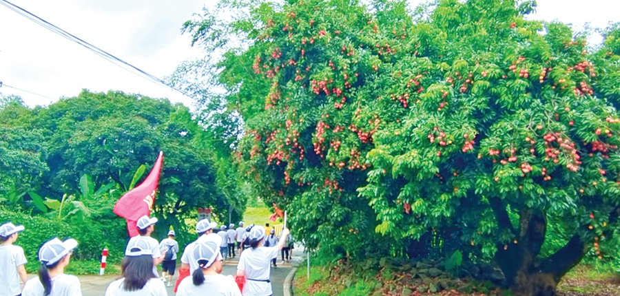 眼下正是荔枝豐收季,路邊一棵棵荔枝樹上掛滿了紅果子,著實(shí)惹眼!昂渺n啊,快給我拍照。”大家結(jié)伴而行,有說有笑,拍照留念,并在徒步中開展環(huán)保、反詐、安全等知識(shí)宣傳活動(dòng)。