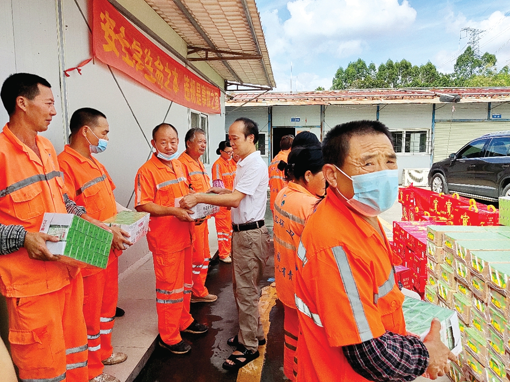 送清涼慰問(wèn)活動(dòng)送出6000多份慰問(wèn)品。 惠州日?qǐng)?bào)記者黃尉宏 通訊員周盛玲 攝