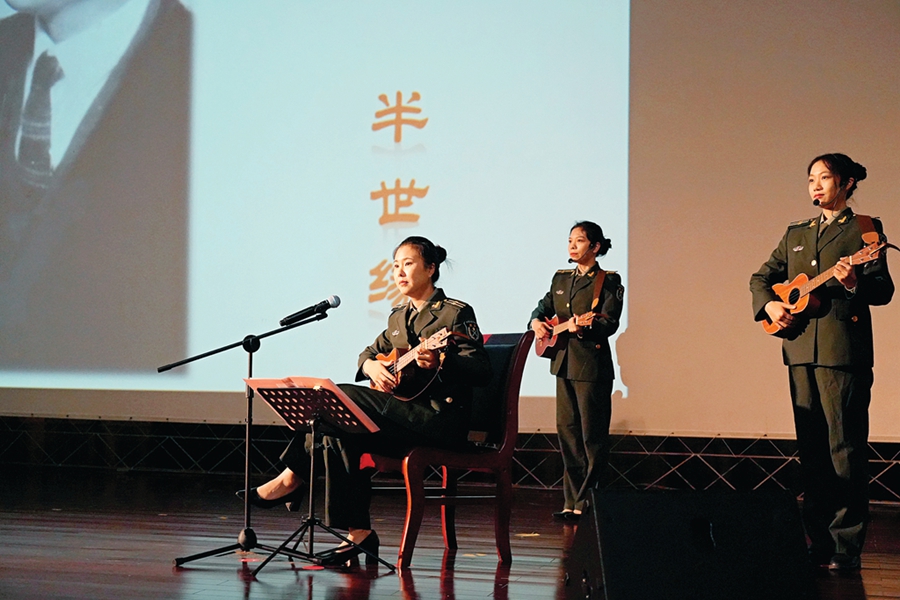 舞臺下,觀眾們聚精會神觀看,時而眼神欣喜,時而表情凝重、眉頭緊鎖,看到悲壯難過時,忍不住悄悄抹眼淚。彈唱中特別融入了當代青少年耳熟能詳的《孤勇者》《逆戰(zhàn)》等歌曲旋律,進行了歌詞改編。每當熟悉旋律響起時,學生們會跟著輕聲吟唱。