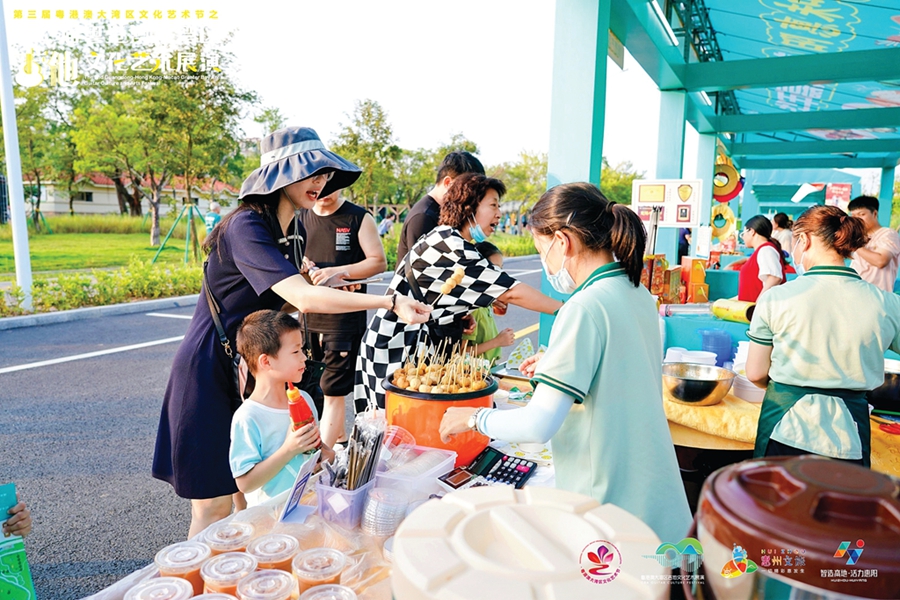 惠陽體育文化公園內(nèi)同樣熱鬧非凡,一場美食嘉年華正在熱鬧舉行。當(dāng)?shù)?0家具有代表性的本地美食商家參與其中,惠陽老字號企業(yè)美食、飲品小吃、農(nóng)特產(chǎn)品……吸引了眾多游客品嘗體驗(yàn)。