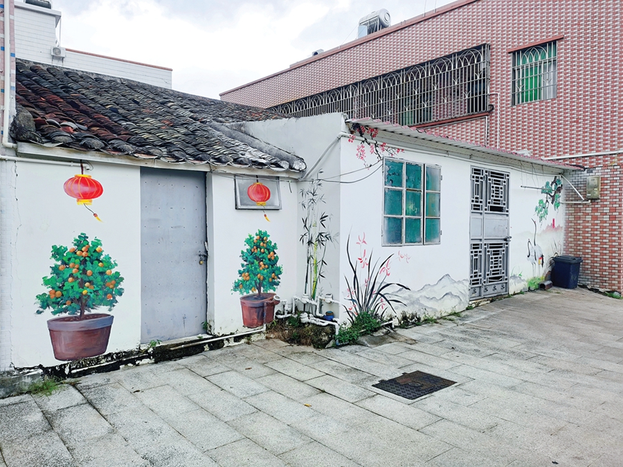 精美墻繪把“赤膊房”點(diǎn)綴得煥然一新。 惠州日?qǐng)?bào)記者李芳娟 通訊員黃坤 攝