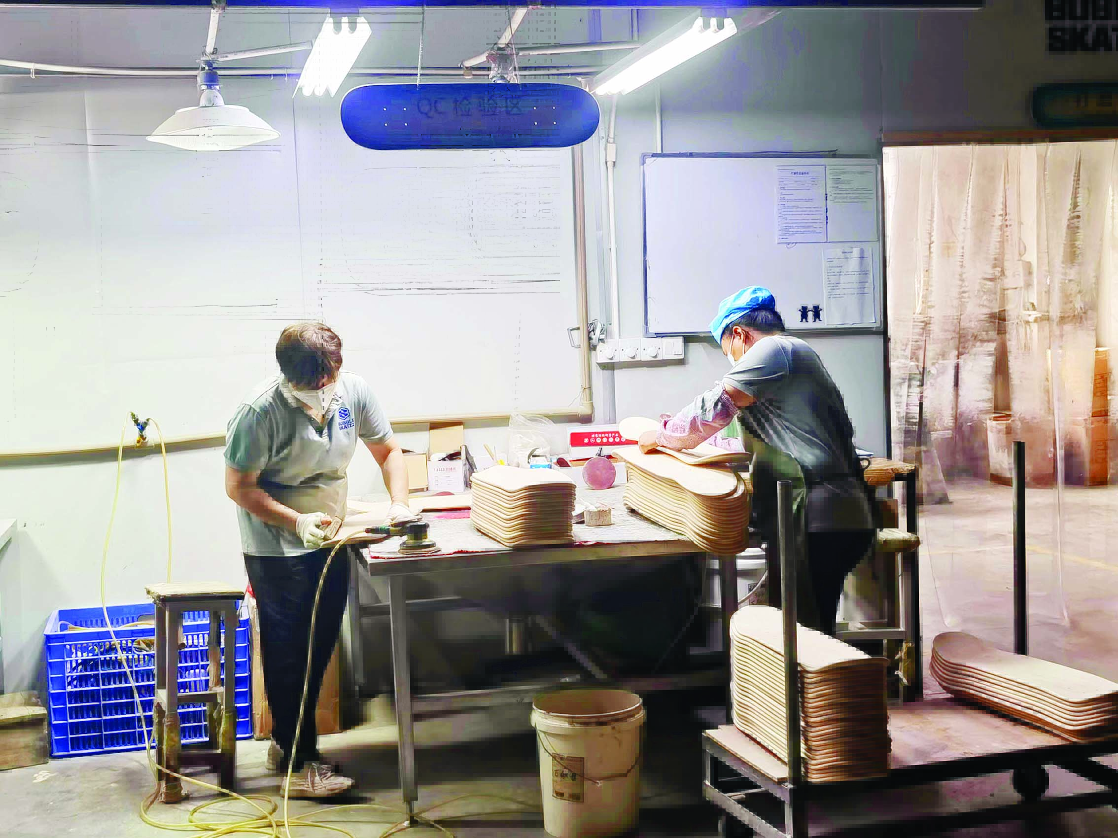 “他們細(xì)節(jié)、品控都做得很好,還會(huì)在我們抽檢前提前篩查瑕疵品。甚至在我們產(chǎn)品需求量大、制作工期緊張的情況下,他們的人力和設(shè)備也能夠滿足我們的要求!睋(jù)匯美鑫公司的合作品牌負(fù)責(zé)人說(shuō),由于該品牌對(duì)滑板的生產(chǎn)標(biāo)準(zhǔn)要求很高,他考察過(guò)很多工廠后,最終決定和匯美鑫公司合作。
