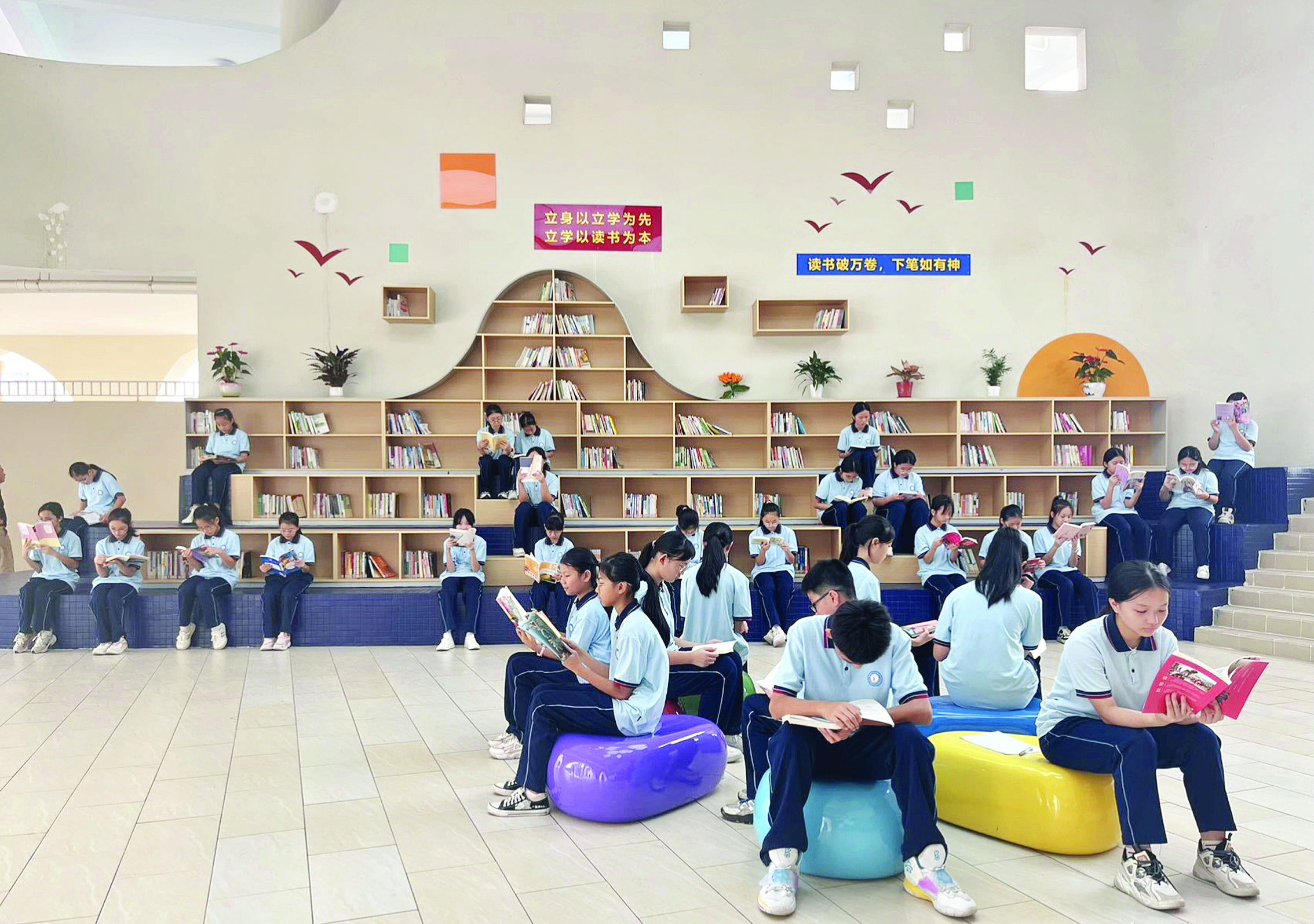 惠陽(yáng)區(qū)第七中學(xué)教學(xué)樓一樓設(shè)立開放式校園書吧以來(lái),校園里愛讀書、讀好書、善讀書的氛圍越來(lái)越濃。2023年,在人大專項(xiàng)資金的幫助下,該校充分利用合理空間,在教學(xué)樓一樓設(shè)立占地約200平方米的“悅”書吧,作為師生學(xué)習(xí)、休憩的重要場(chǎng)所。每到下課時(shí)間,書吧里就聚滿了同學(xué),大家浸潤(rùn)在書籍的海洋里,利用碎片化時(shí)間進(jìn)行閱讀。