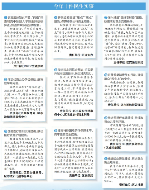 《方案》還提及,十件民生實(shí)事工作列入今年區(qū)政府重點(diǎn)督查和政府部門績效考核內(nèi)容,由區(qū)委區(qū)政府督查辦全程跟蹤督辦,堅持說了就算、定了就干、干就干好,一件一件抓落實(shí)、一項一項抓兌現(xiàn),采取日常監(jiān)督和抽查暗訪相結(jié)合的方式,定期通報進(jìn)度,確保各項工作按時推進(jìn)。