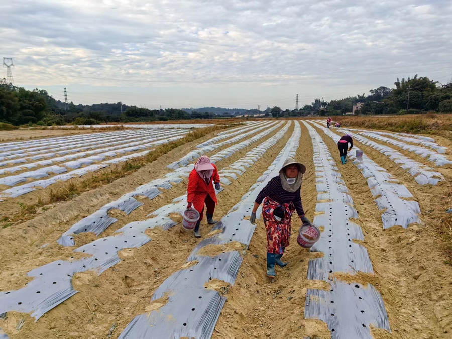 在永湖鎮(zhèn)吊瀝村,農(nóng)場負(fù)責(zé)人利用兩稻之間閑時(shí)種植馬鈴薯,帶動周邊村民就業(yè)。