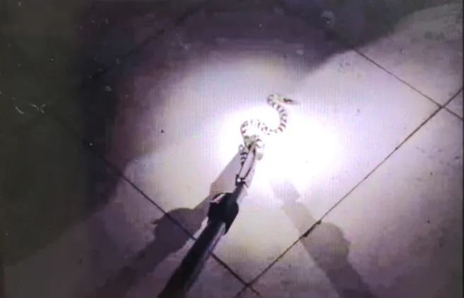 惠州惠陽(yáng)某企業(yè)的員工陳姐(化名)下班后,回宿舍洗漱完畢躺床上準(zhǔn)備休息時(shí),突然感覺左手臂傳來刺痛感,同時(shí)感覺一個(gè)滑溜溜的物體從手上滑過去。心覺不妙的陳姐立即起身查看,甩手拍打間,一條黑白相間的蛇掉落地上。看到蛇的那一瞬間,陳姐被嚇得驚叫起來。