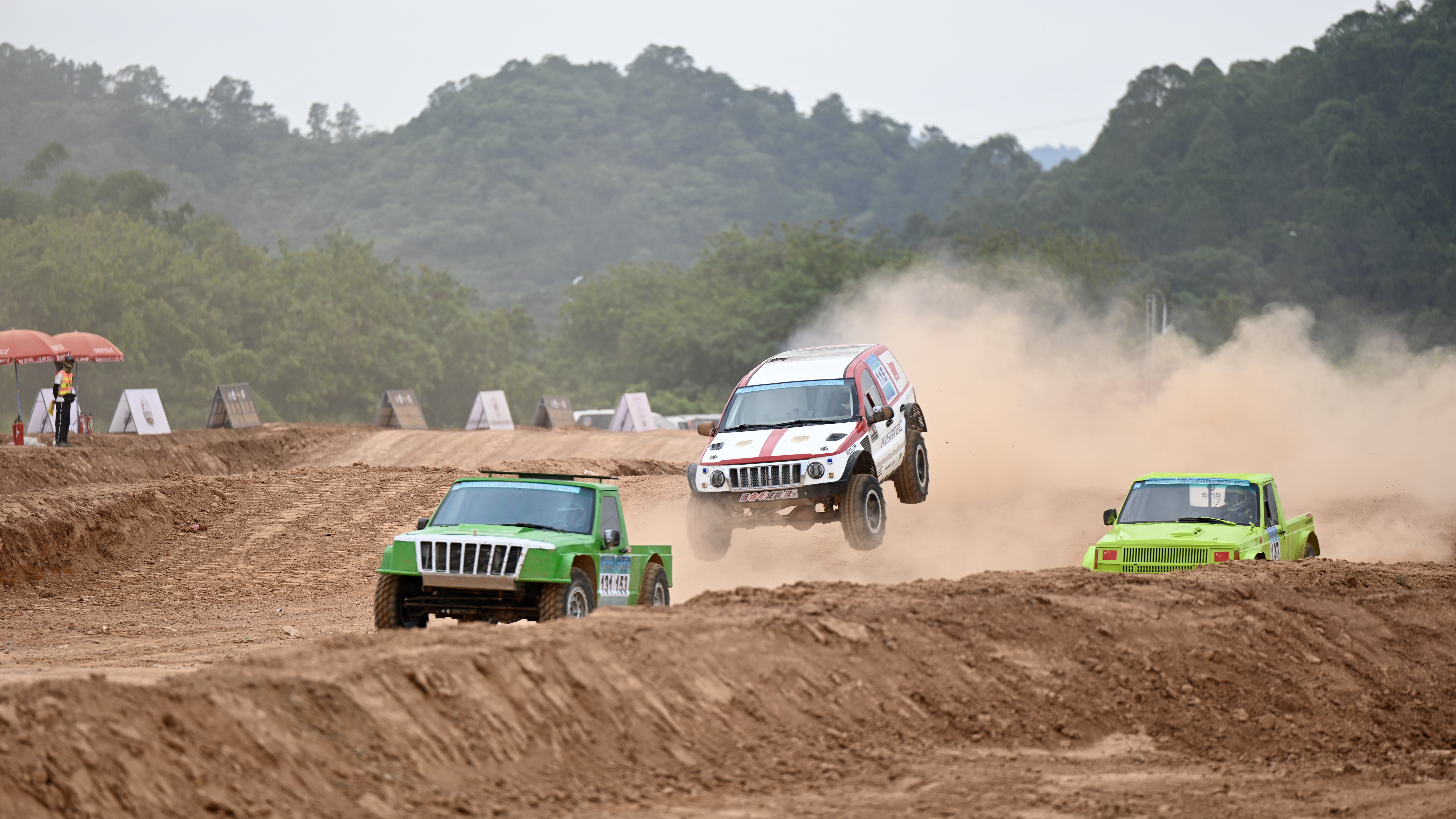 賽場上,162名優(yōu)秀賽車手(其中包括21名國家級賽車手)在賽道飛馳,泥漿四濺、引擎轟鳴,賽車騰空躍起、車輪高速飛馳、甩出的塵土飛揚,極具視覺沖擊力,充分展現了汽車越野的個性魅力,引得現場觀眾陣陣驚呼及掌聲。