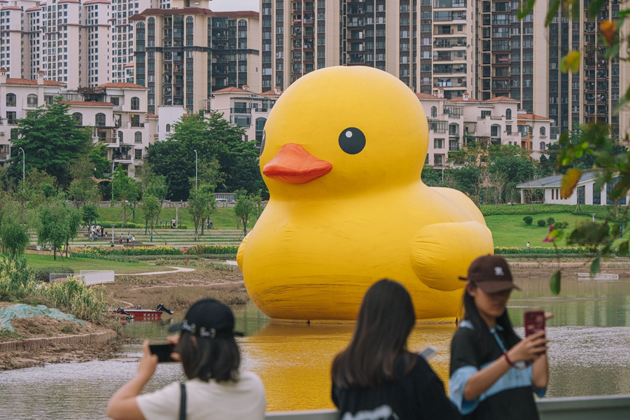 據(jù)介紹,《Rubber Duck(大黃鴨)》是荷蘭藝術(shù)家弗洛倫泰因·霍夫曼(Florentijn Hofman)代表作之一,是時下爆款的公共藝術(shù)作品。在來到惠陽區(qū)前的15年內(nèi),大黃鴨已經(jīng)完成了環(huán)球旅行,成功打卡52個國家和地區(qū),每到一個地方都能引起當?shù)氐牟毮,游客排隊去跟它合照,并在社交媒體上引發(fā)熱議,也為當?shù)卦谘苌肥圪u、餐飲、住宿、交通等周邊產(chǎn)業(yè),帶來了巨大的經(jīng)濟效益。
