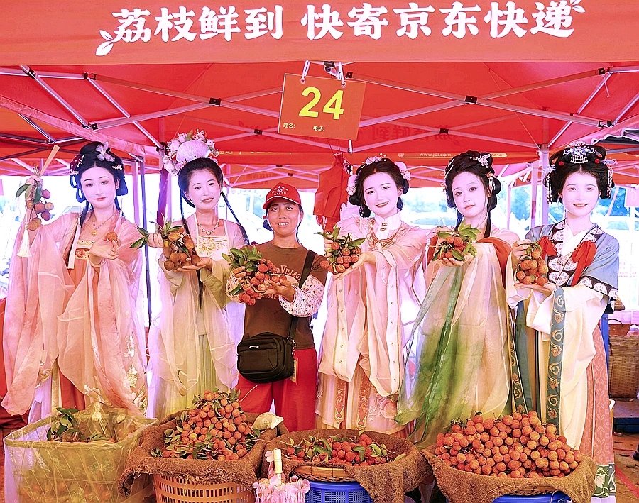 漢服愛好者在現(xiàn)場為鎮(zhèn)隆荔枝打call。