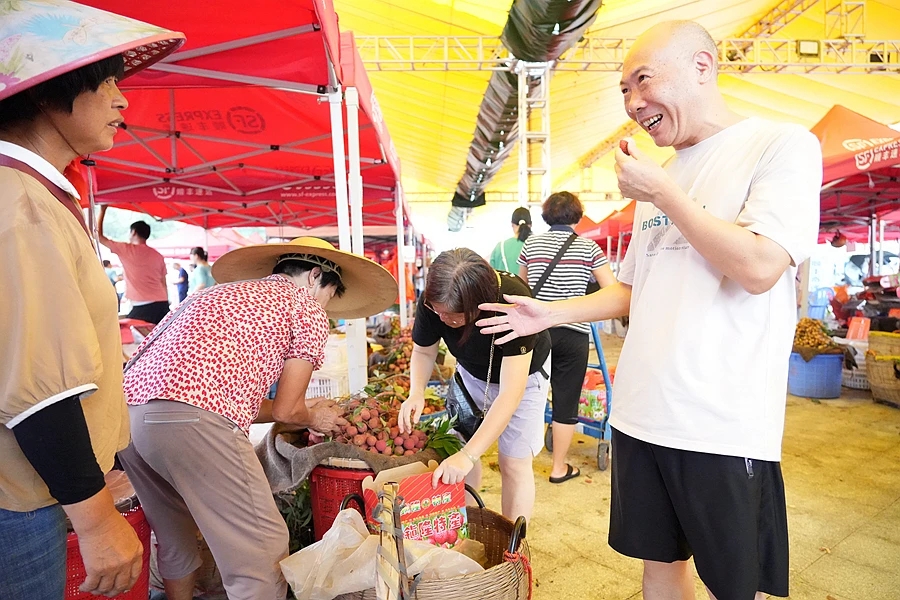 市民游客到RCEP廣東惠州(鎮(zhèn)。├笾灰字行倪x購荔枝。