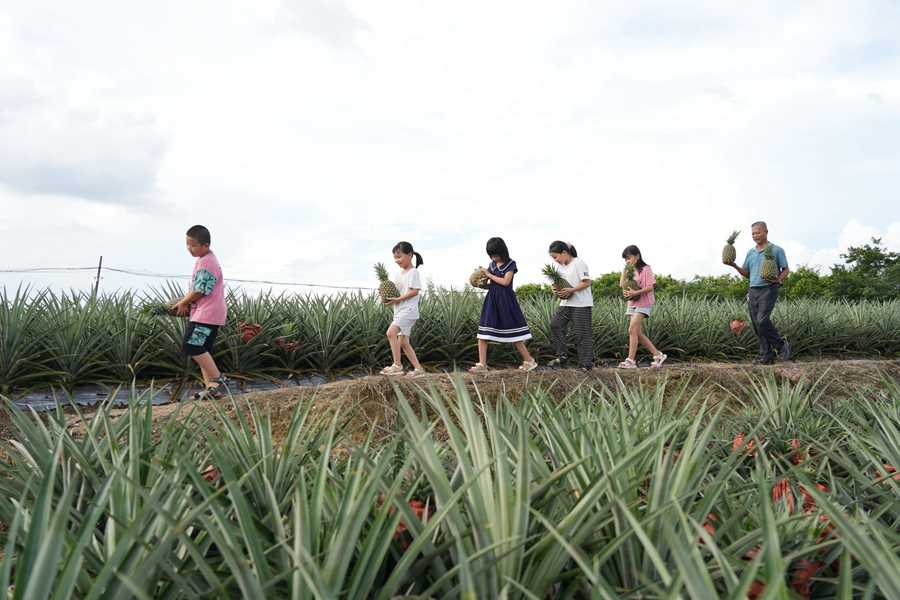 正是鳳梨上市之時,恰逢暑假,惠陽區(qū)良井鎮(zhèn)樓角村迎來一批又一批的親子采摘游客。據(jù)了解,目前該村鳳梨種植面積近200畝,從初夏到深秋,從鮮果到果苗,持續(xù)給村民、村集體帶來經(jīng)濟收入。接下來,該村計劃延伸產(chǎn)業(yè)鏈制作“鳳梨干”和“鳳梨酥”,打造“一村一品”,探索以特色水果助力鄉(xiāng)村振興。
