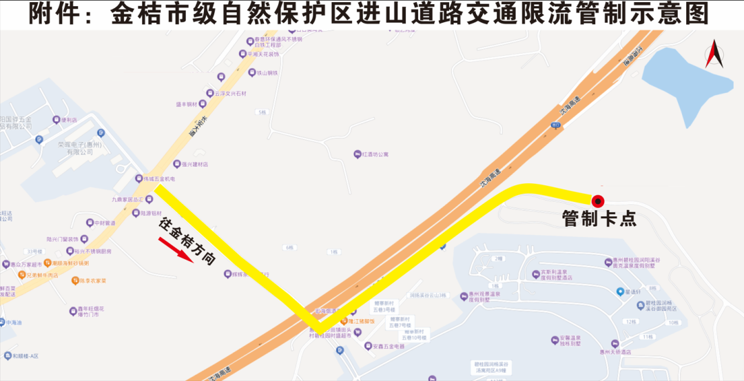 附:金桔市級自然保護(hù)區(qū)進(jìn)山道路交通限流管制示意圖