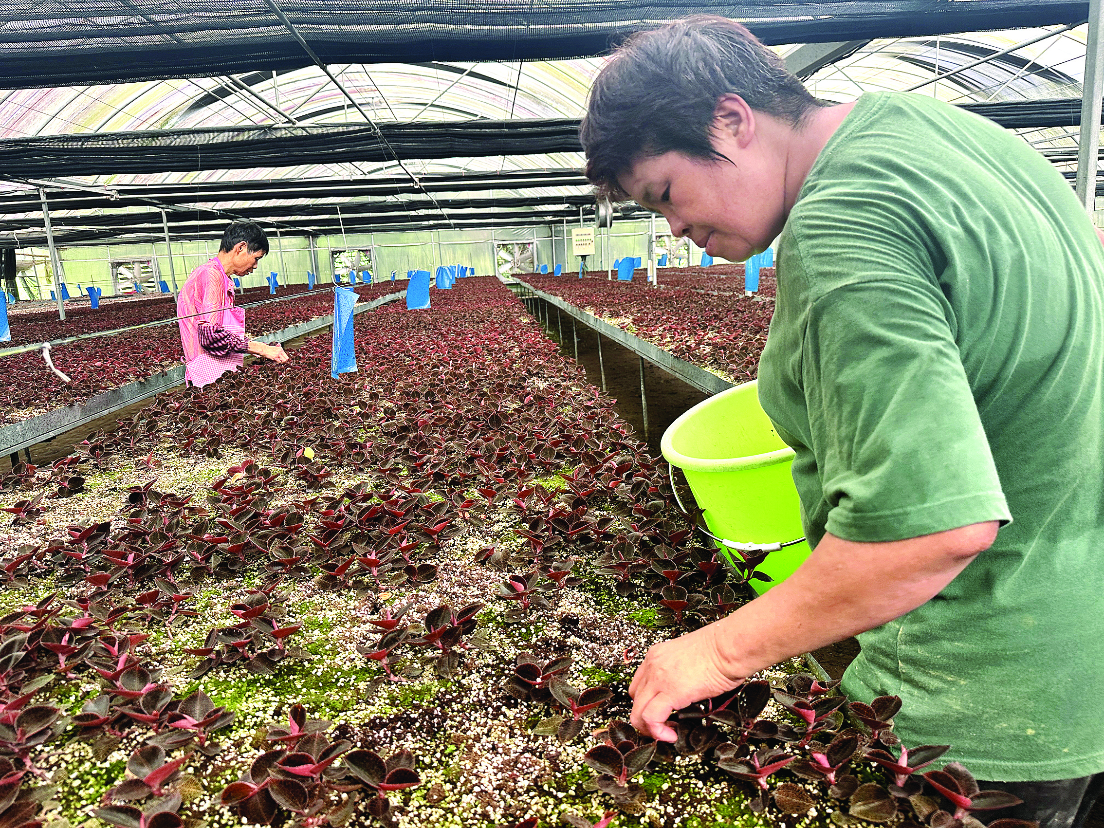 據(jù)了解,金線蓮一般是當年11月種植幼苗,次年8~9月采摘收獲,跨時近一年。采訪時,幾名女工正在大棚內(nèi)采摘金線蓮。據(jù)介紹,大棚內(nèi)有4個品種:東南亞金線蓮、花葉、尖葉、紅霞,有的藥用價值一般,有的藥用價值高!拔夷壳耙廊辉谔剿,多個品種嘗試種植,最終敲定幾個品種作為龍頭!狈堕_強說。
