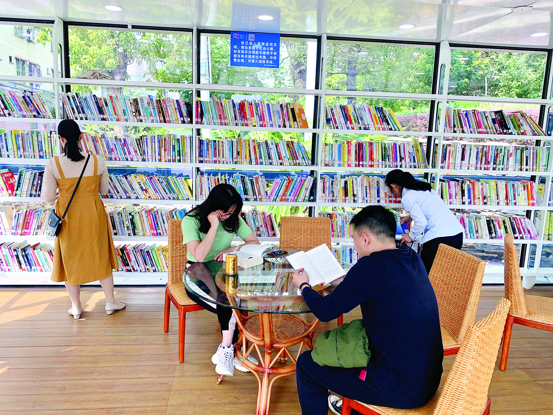 市民在歸善書房(景嶺公園站)享受閱讀的樂趣。