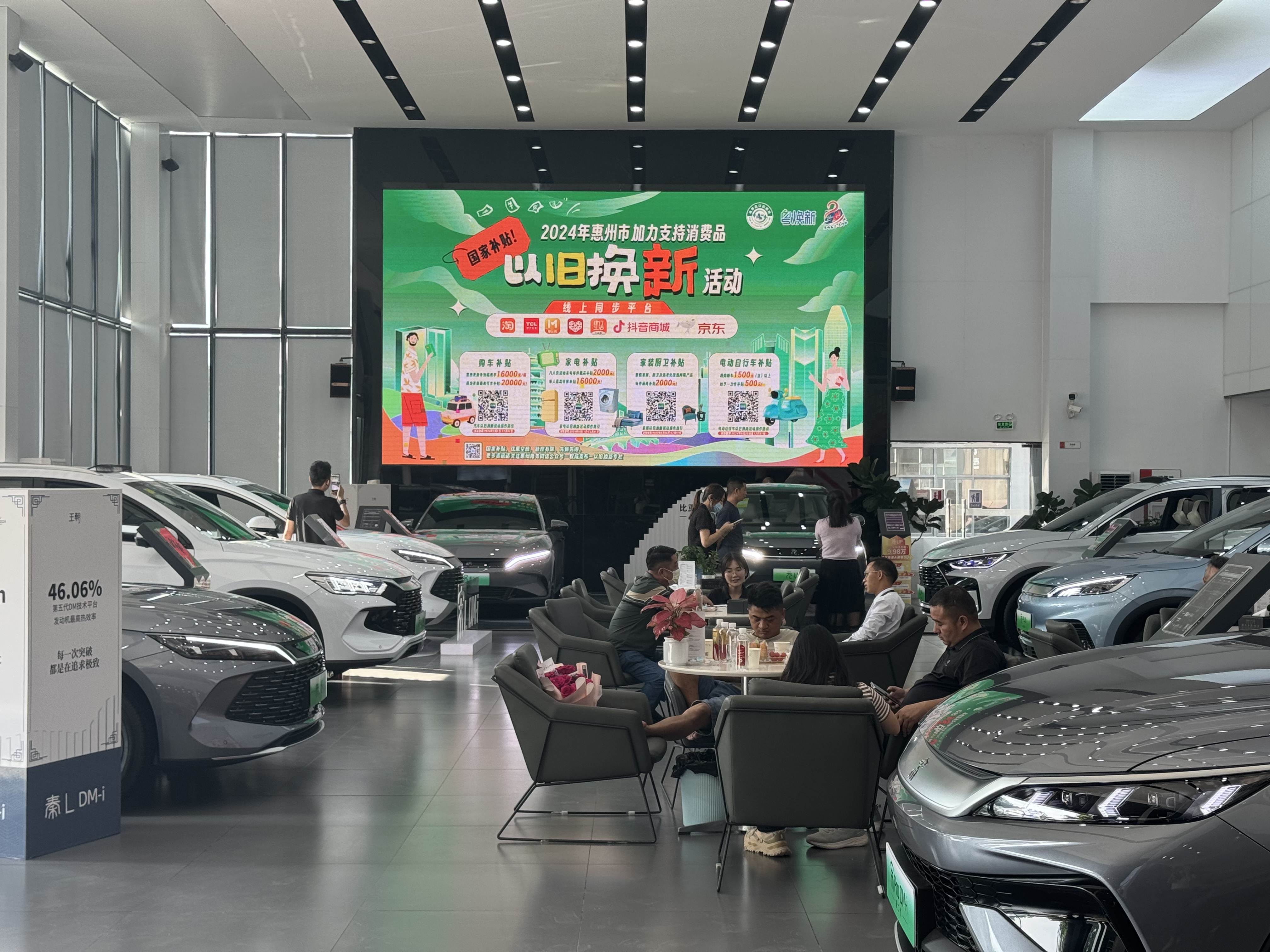 “現(xiàn)在客流還是挺大的,9月我們門店的銷售量同比上漲了26%。”日前,記者在秋長街道的惠州市金源比亞迪王朝網(wǎng)4S店看到,以舊換新活動的標識展板格外醒目,為前來購車的市民提供了清晰的指引。該店網(wǎng)銷經(jīng)理丁國梁介紹,市民不僅可以享受政府提供的補貼,商家也推出了相應的優(yōu)惠措施,一輛車最高可補貼28000元,吸引了大量市民前來咨詢和購車。