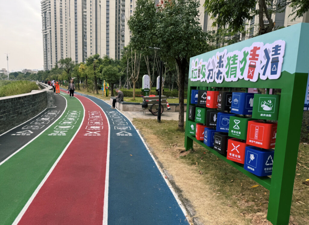 住在惠陽(yáng)淡水壩尾社區(qū)的居民最近發(fā)現(xiàn)了,沿淡水河一側(cè)的綠化景觀帶和沿河步道有了新變化,色彩鮮明的四色垃圾分類跑道、活潑有趣的垃圾分類科普設(shè)施給這片堤岸綠帶增添不少亮色,原本普通的綠化景觀帶瞬間化身成為一個(gè)綠色環(huán)保知識(shí)小寶庫(kù)。這些新增的設(shè)施就是惠陽(yáng)區(qū)打造的首批垃圾分類科普設(shè)施,也是惠陽(yáng)區(qū)深入推進(jìn)垃圾分類知識(shí)和理念深入人心的具體實(shí)踐與探索。