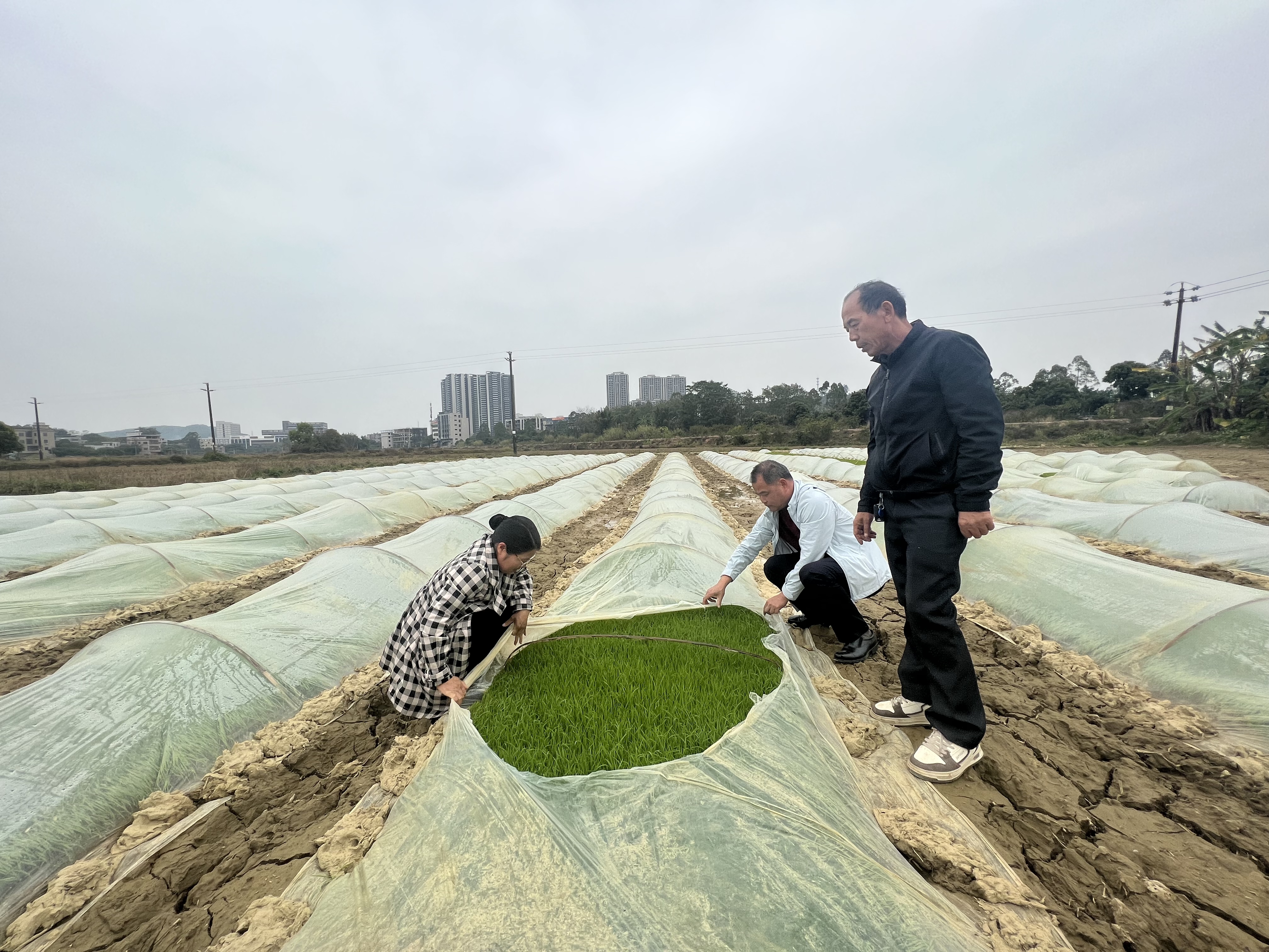 惠陽農(nóng)業(yè)專家到田間查看育秧情況,指導(dǎo)農(nóng)民做好備耕工作。