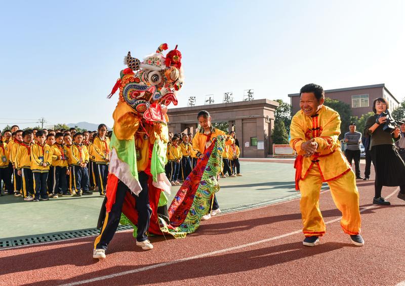 非遺麒麟舞進(jìn)校園;葜萑?qǐng)?bào)記者許文昌 通訊員盧嘉敏 攝
