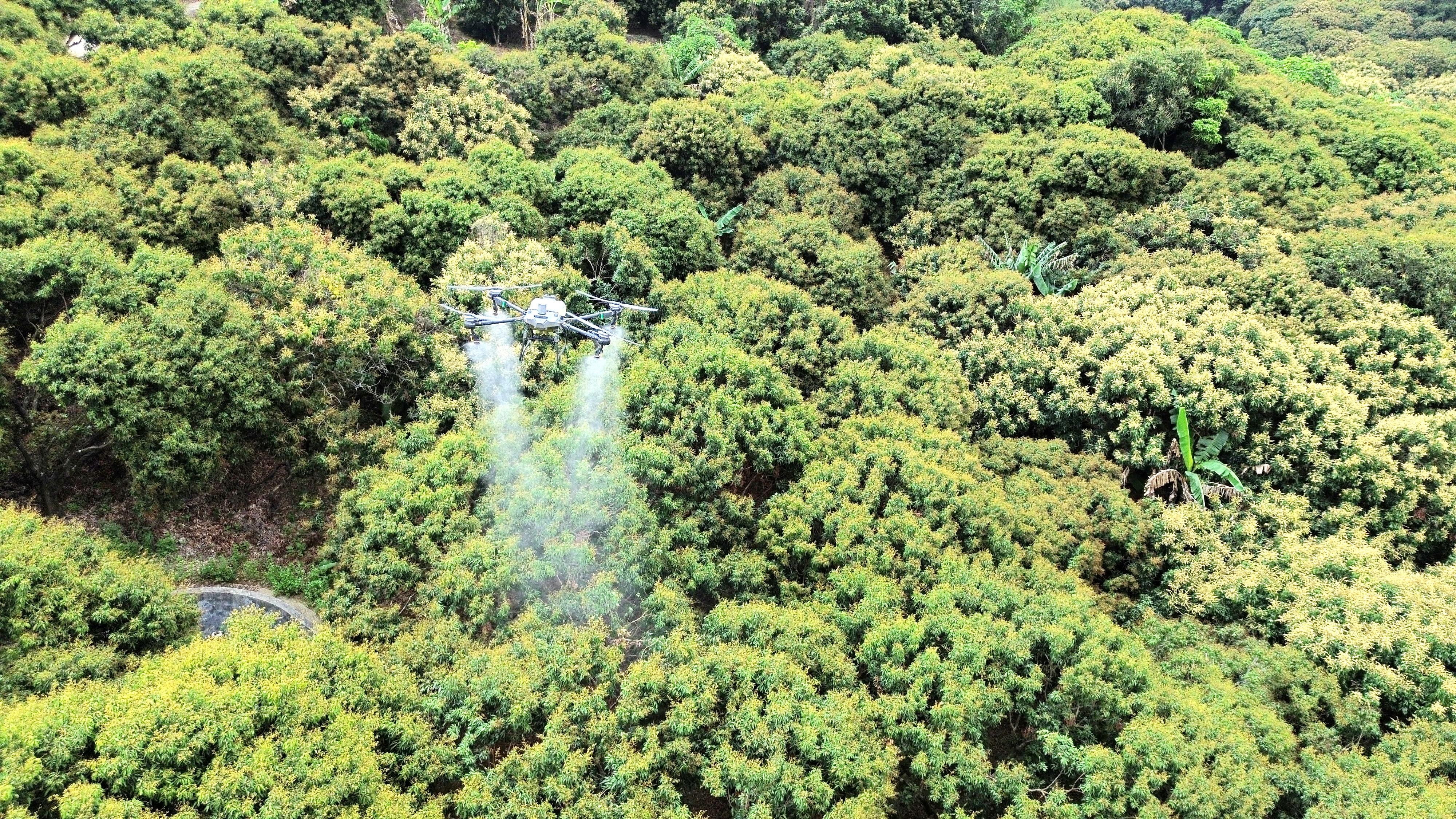 “過(guò)去傳統(tǒng)的人工噴藥方式存在諸多弊端。太高的樹(shù)難以噴到,太陡的山根本上不去,不僅效率低下、耗費(fèi)大量人力和時(shí)間,還存在諸多安全隱患!睆垊捉榻B,鎮(zhèn)隆的荔枝多生長(zhǎng)在山坡林間,農(nóng)資運(yùn)送上山較為艱難,不少只能疏于管理、放任生長(zhǎng)。這樣一來(lái),轄區(qū)整體病蟲(chóng)害防治效果參差不齊。