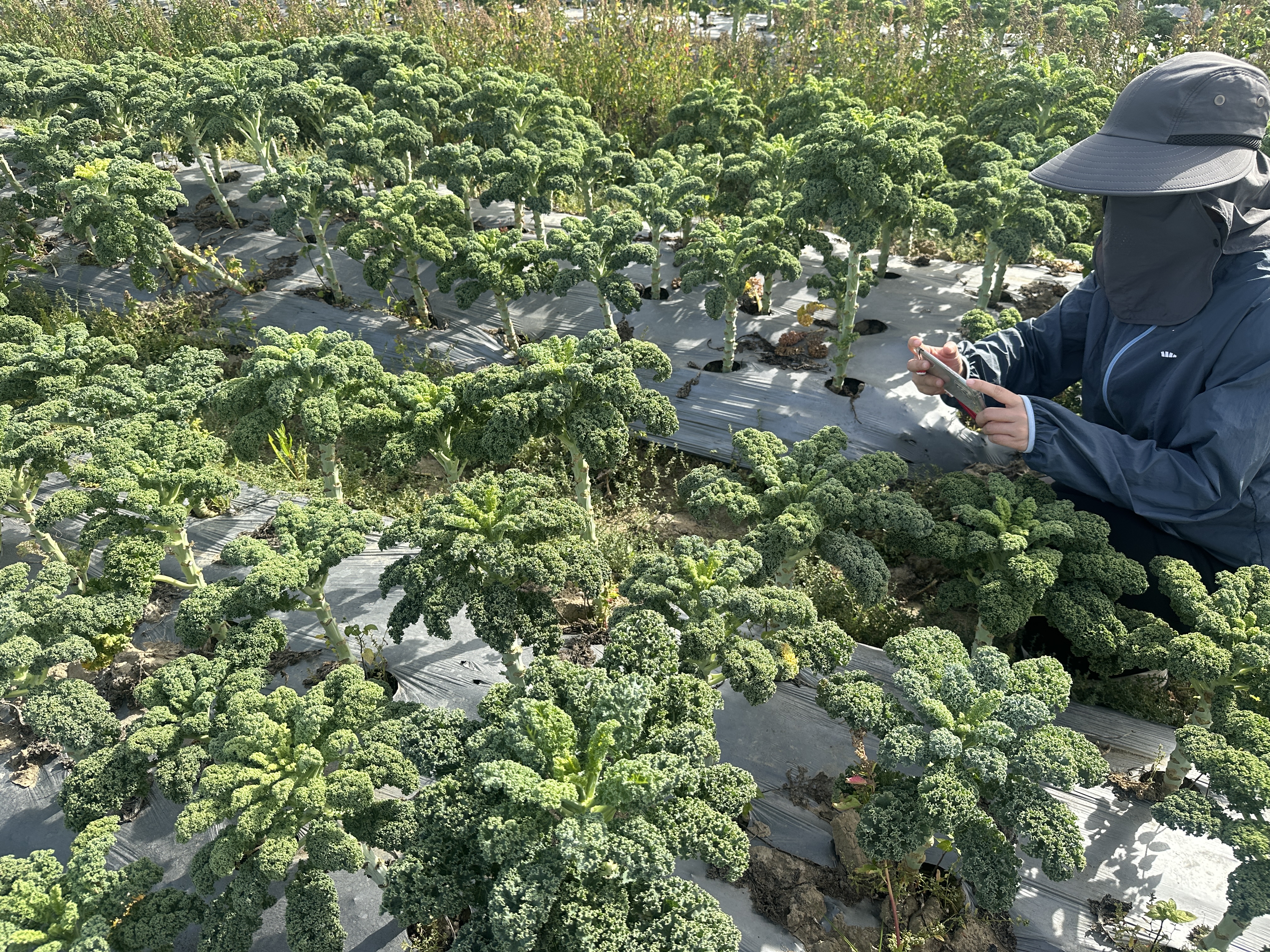 為減少蟲害,他瞄準(zhǔn)氣溫降低的時候,在去年12月播種羽衣甘藍(lán),今年1月收獲。為減少管理成本,在夏季來臨前,他輪換種植其他應(yīng)季農(nóng)作物。