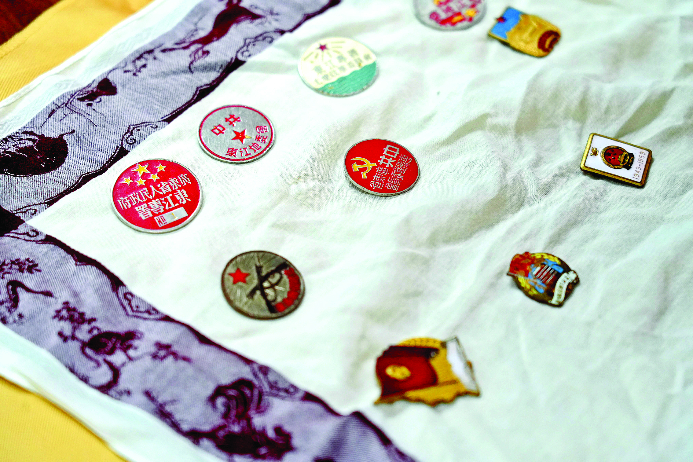 葉鋒家屬捐贈的各類徽章;葜萑請笥浾咴S文昌 攝