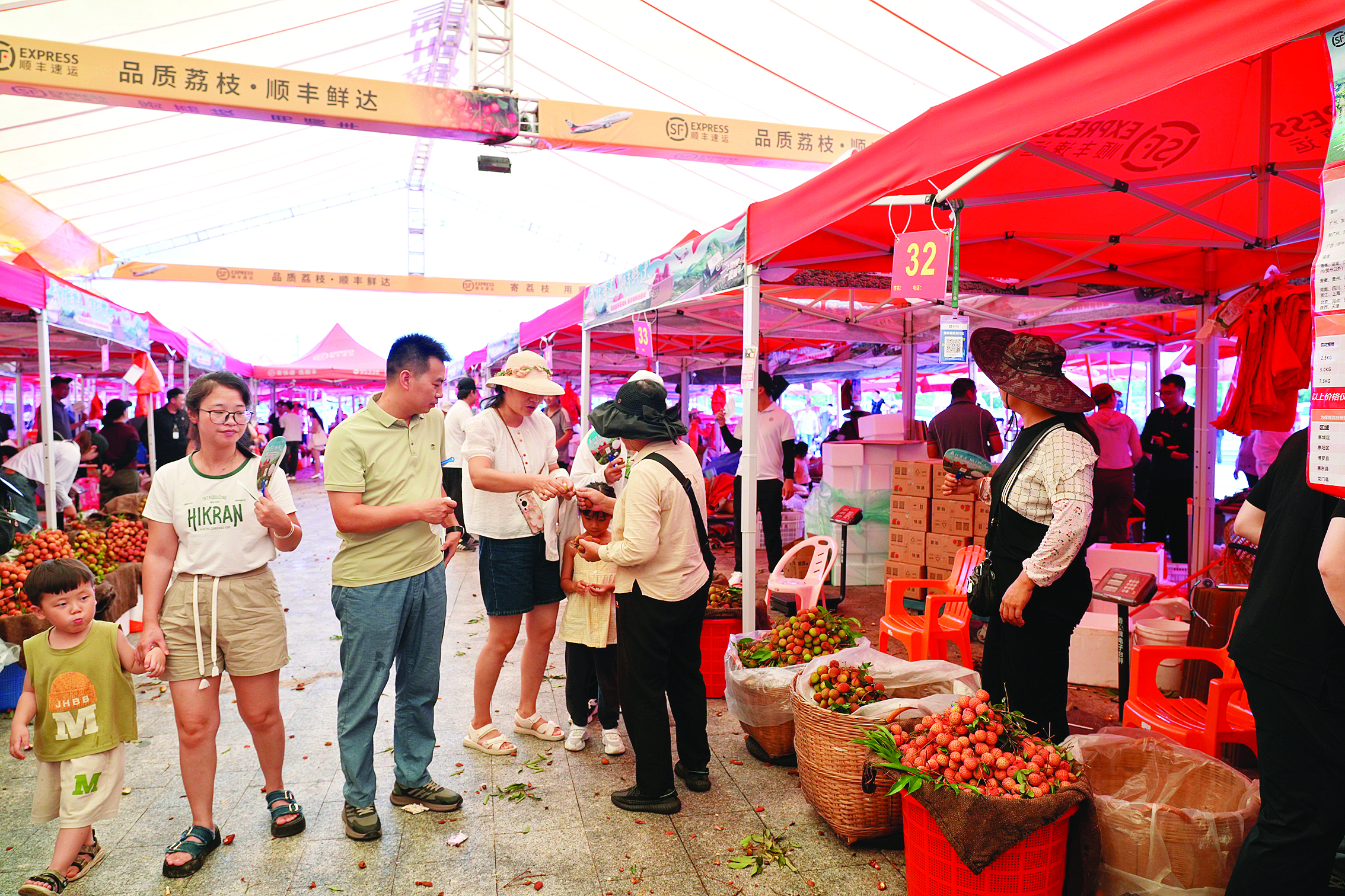 在RCEP廣東惠州(鎮(zhèn)。├笾灰字行膬(nèi),市民來(lái)嘗鮮荔枝早果;葜萑?qǐng)?bào)記者許文昌 攝