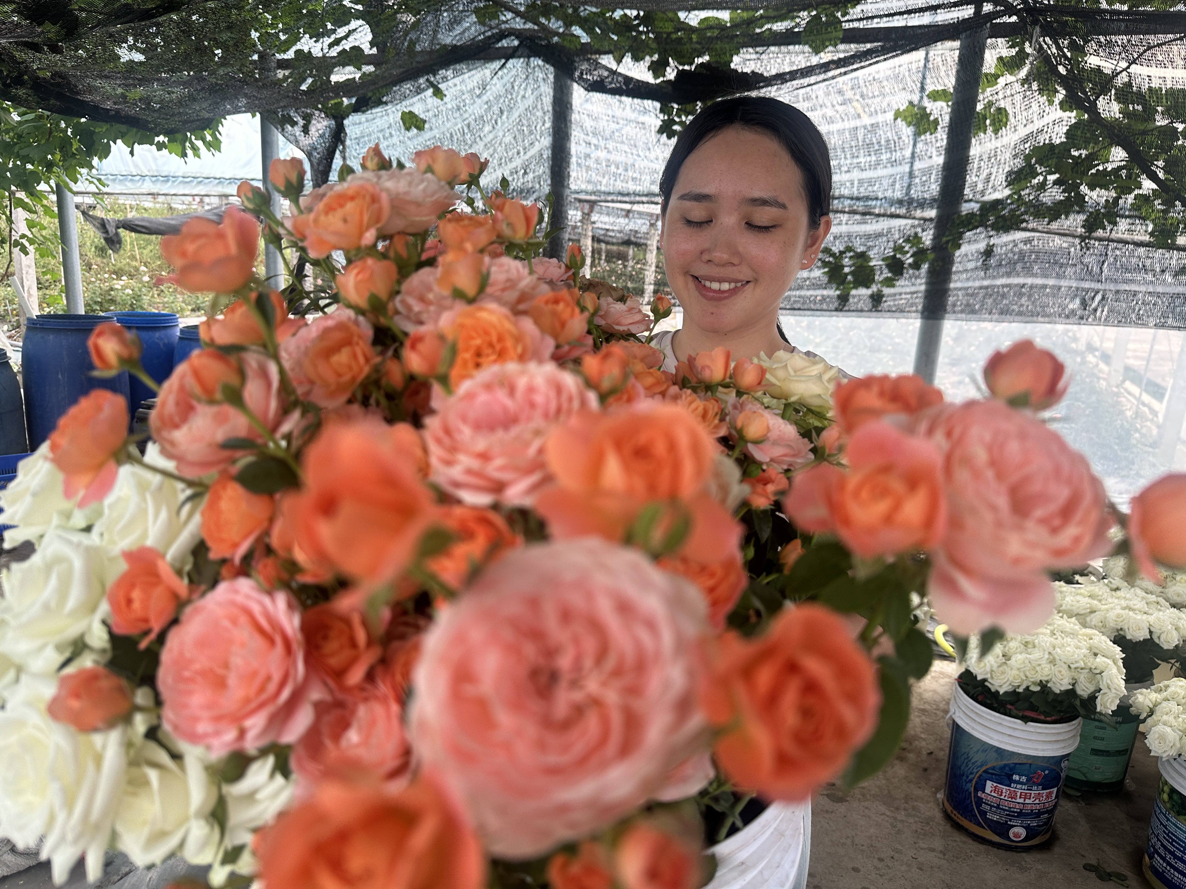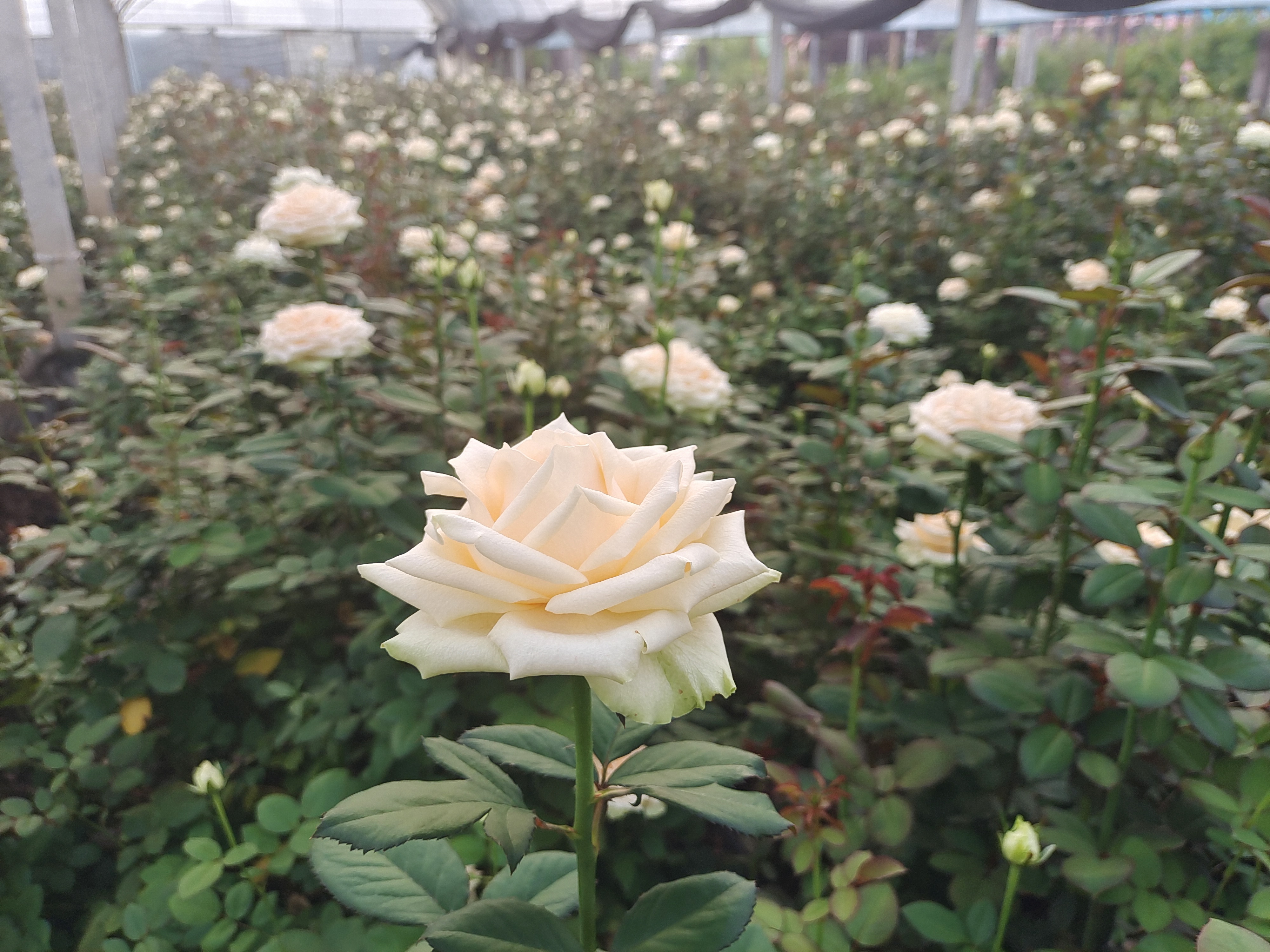 基地種植了近20個品種的玫瑰花,紅的、白的、橙的、玫紅色……每一款都令人愛不釋手。據(jù)玫瑰園管理人員介紹,玫瑰種植之路并非一帆風(fēng)順。起初,這片土地因長期閑置,土壤肥力下降,雜草叢生。自接手后,面臨著諸多挑戰(zhàn):先是要投入大量資金和人力,對土地進行深翻、施肥,改善土壤結(jié)構(gòu),為玫瑰種植創(chuàng)造良好的基礎(chǔ)條件。玫瑰嬌貴,對環(huán)境要求極為苛刻。這里種植的玫瑰品種來自云南,為了在溫度、濕度、光照等方面達到類似云南種植的標(biāo)準(zhǔn),園區(qū)特意搭建了適宜玫瑰生長的大棚。從種苗的選擇、培育,到日常的田間管理,技術(shù)人員都給予了全方位指導(dǎo)。