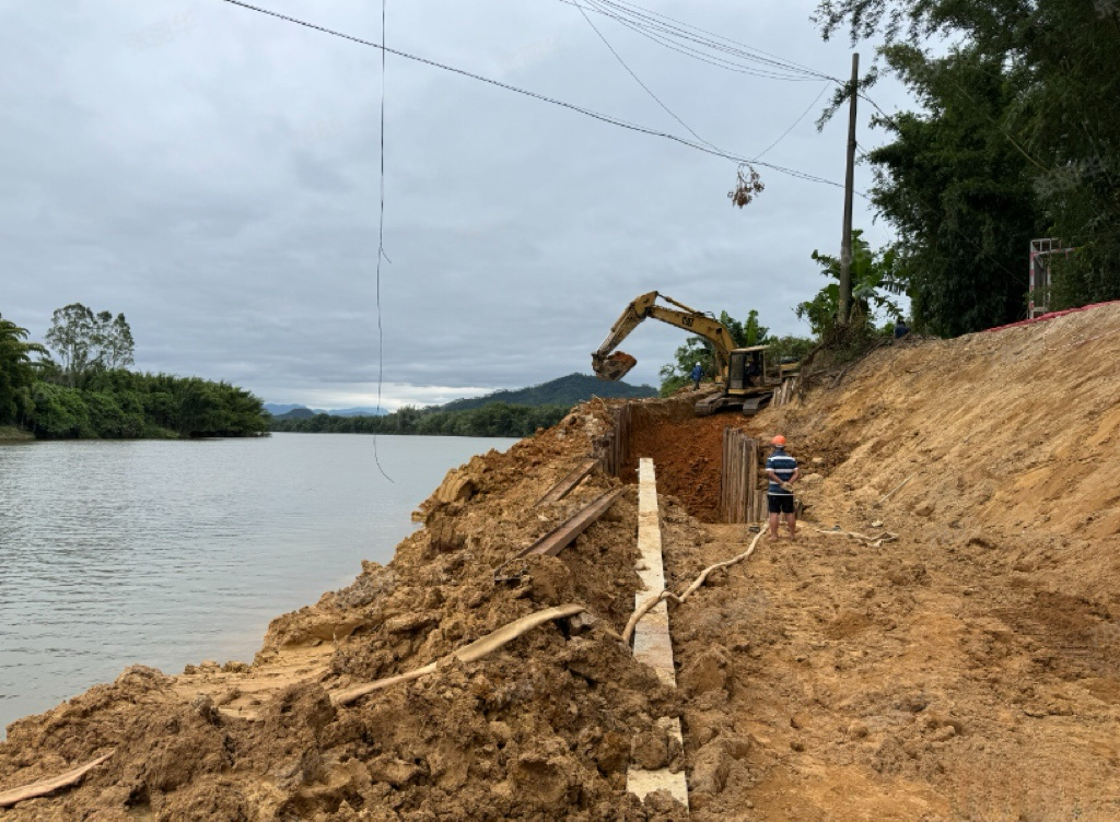 曲灣塘渡口開(kāi)挖新的擋水墻基坑。