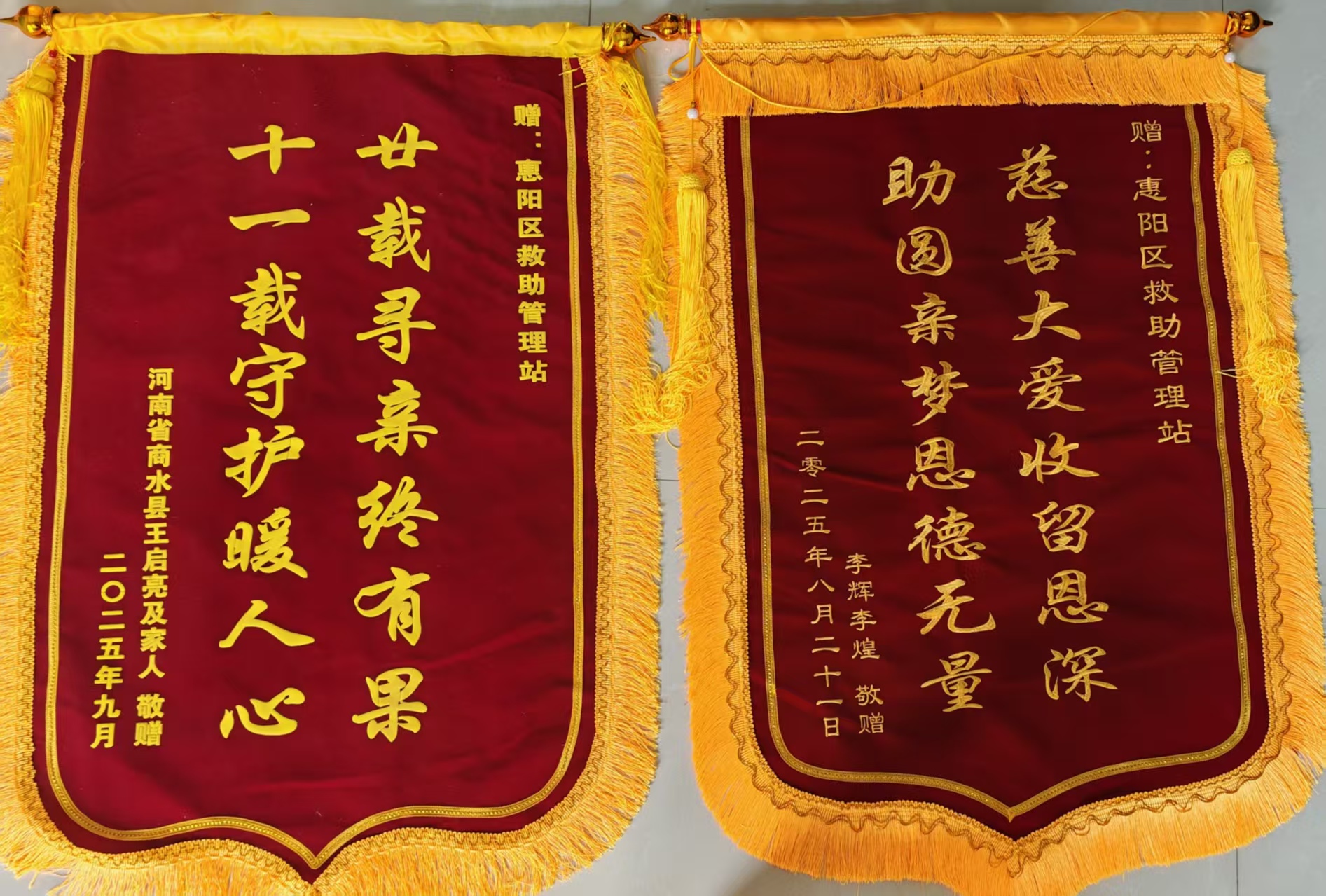 惠陽區(qū)救助管理站收到的兩面錦旗。