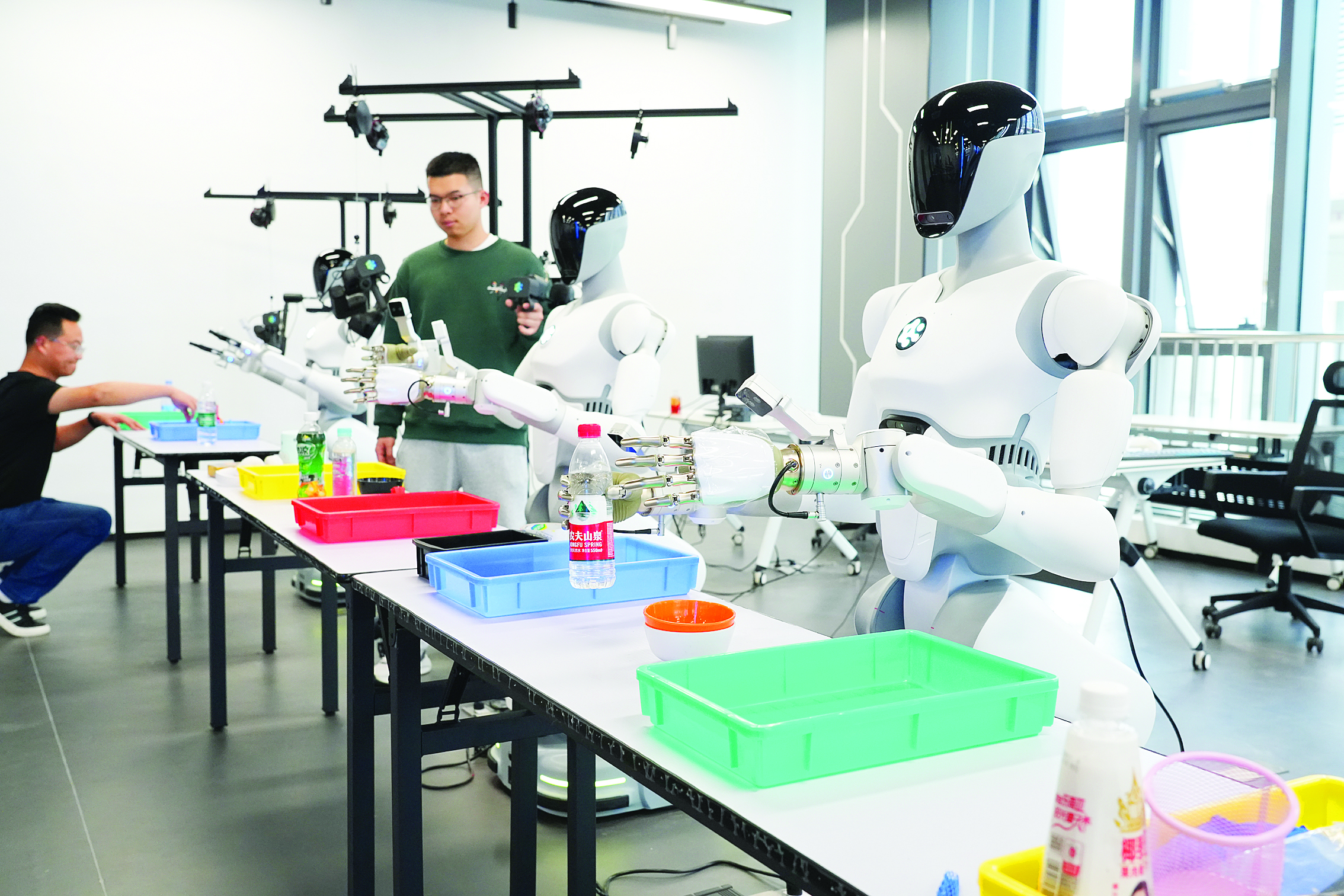 惠陽具身智能訓練場內,訓練師正在訓練仿生機器人采集數據。