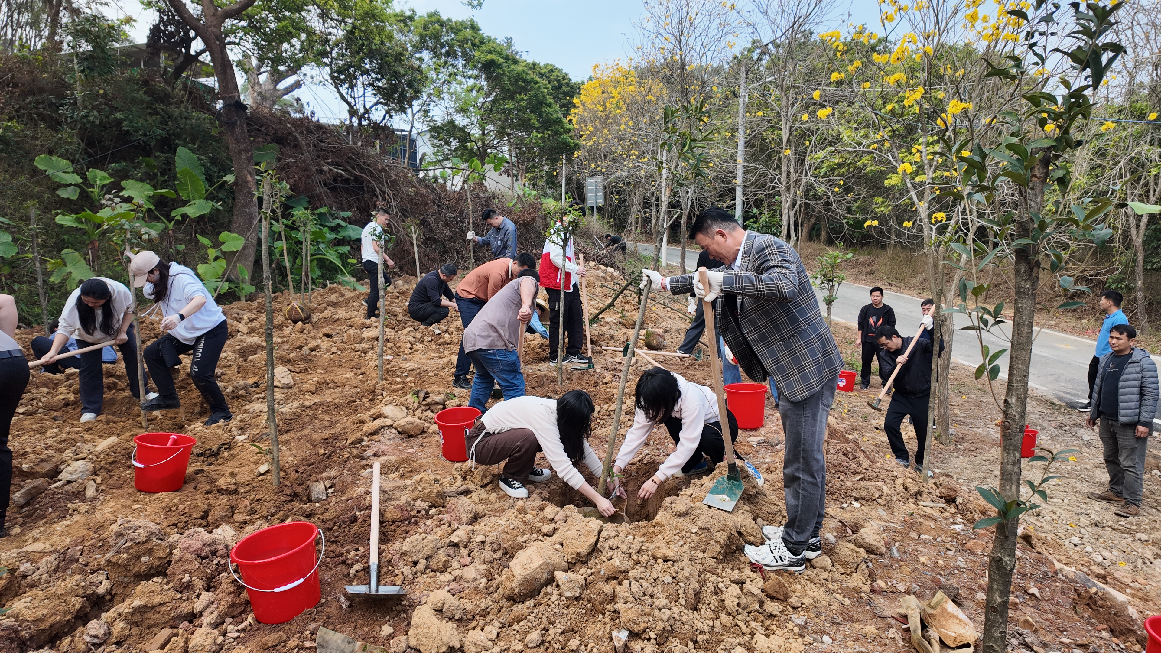 新圩鎮(zhèn)在元洞村元洞村民小組開(kāi)展義務(wù)植樹(shù)活動(dòng),鎮(zhèn)班子、各村(社區(qū))書(shū)記、消防救援官兵、部分人大代表、志愿者等100多人,在古庵路兩旁種植桂花樹(shù)300株。鎮(zhèn)隆鎮(zhèn)在塘角村河布塘地段開(kāi)展鄉(xiāng)村綠化植樹(shù)活動(dòng),鎮(zhèn)班子、各村(社區(qū))負(fù)責(zé)人及黨員群眾代表攜手勞作,進(jìn)一步擴(kuò)大鄉(xiāng)村綠化覆蓋面,提升鄉(xiāng)村生態(tài)顏值。三和街道集結(jié)機(jī)關(guān)干部、社區(qū)工作者、轄區(qū)單位職工及熱心群眾80余人,栽種200余株小葉紫薇,以實(shí)際行動(dòng)為城市家園添綠筑美,助力綠美三和建設(shè)。