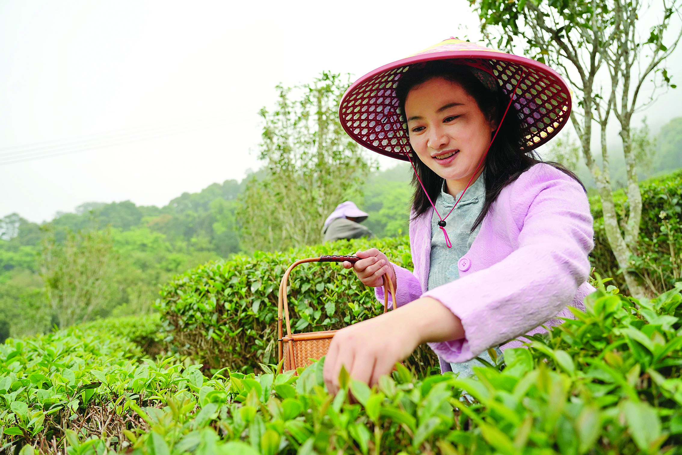 茶農(nóng)正在采摘桔塱茶;葜萑?qǐng)?bào)記者許文昌 攝