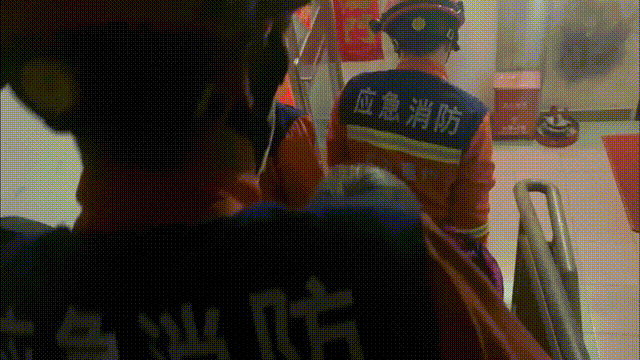 此時老人已經(jīng)出現(xiàn)困難呼吸的情況,現(xiàn)場指揮員果斷下達命令,做好老人的安全保護措施并馬上轉(zhuǎn)移,成功將老人救出移交給醫(yī)護人員。