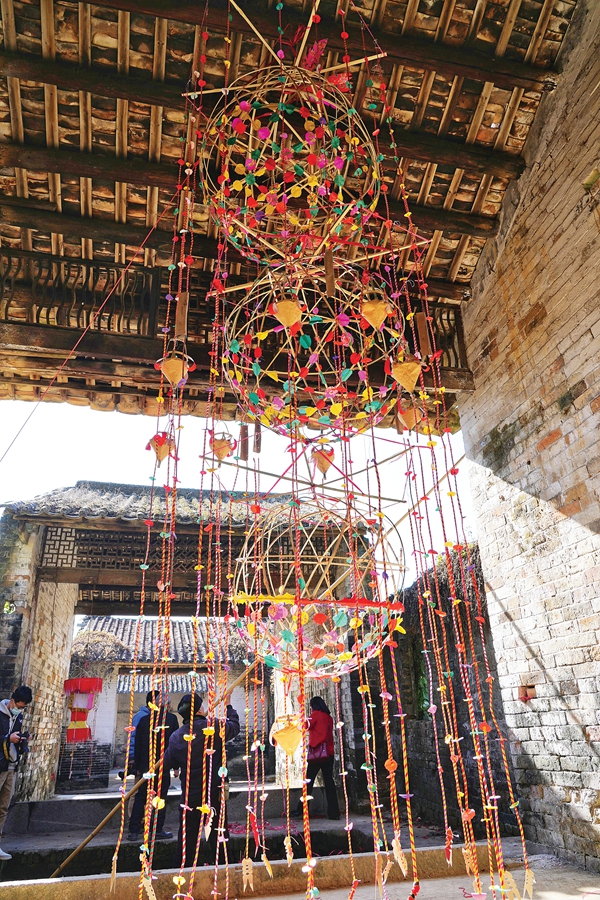 1月30日,農歷大年初九,記者來到龍門縣永漢鎮(zhèn)鶴湖村虎頭坪村民小組,看到當地的村民個個忙忙碌碌,有的制作虎頭花燈,有的將虎頭花燈送到朱莊、大圍、松下嚇等各村小組的祠堂掛起來,準備在今年元宵節(jié)上燈儀式使用。