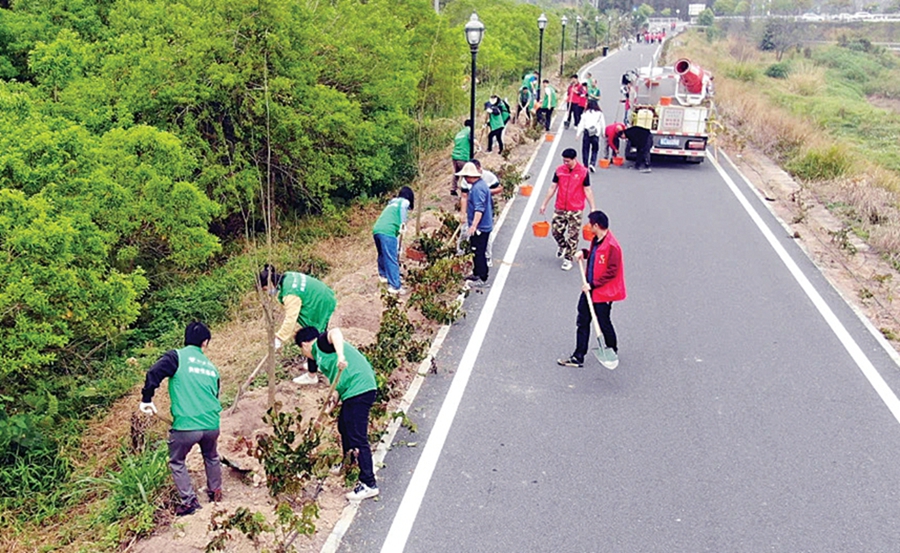 參加活動的干部群眾扶苗、培土、澆水,沿著5公里濱江碧道種下一棵棵樹苗、栽下行行新綠!爸矘潆m然很累,但是心里非常充實,也感受到了大自然需要大家去愛護(hù)。”活動中,與家長一同參加活動的小志愿者黃嘉懿在種下一棵小樹苗后開心地說。據(jù)了解,本次活動吸引了近200名干部群眾參加,大家齊心種下紫花風(fēng)鈴木、小葉紫薇、大腹木棉、鳳凰木等樹苗超1500株。