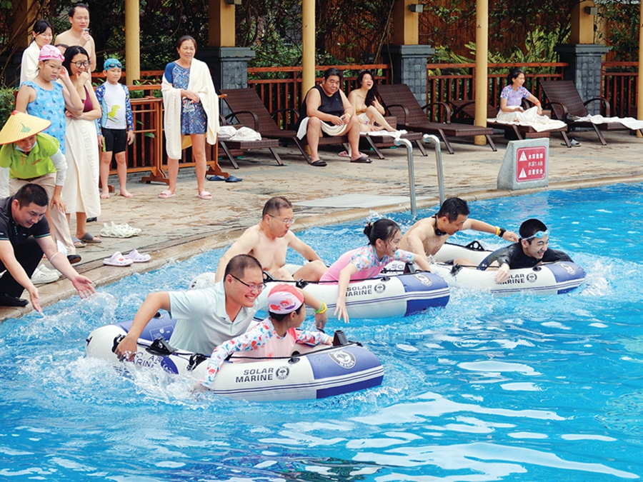 “假期首日,地派溫泉度假村的客房入住率就已達到86%,整體來說安全有序!饼堥T縣地派溫泉森林度假區(qū)景區(qū)負責人、廣東省溫泉行業(yè)協(xié)會副會長、龍門縣旅游協(xié)會會長李星凱介紹,“五一”期間,地派溫泉森林度假區(qū)的客房特別受歡迎,預訂量增長明顯,客房入住率基本超過90%。為了給各地游客帶來舒適、美好的旅行體驗,該景區(qū)在“五一”期間開放了心形泳池、微波泳池以及兒童水上樂園等多個水上項目,同時景區(qū)內(nèi)還設置了多個互動小游戲區(qū)域,讓家長與孩子有更親密的互動接觸,進一步提升旅游體驗感、獲得感。