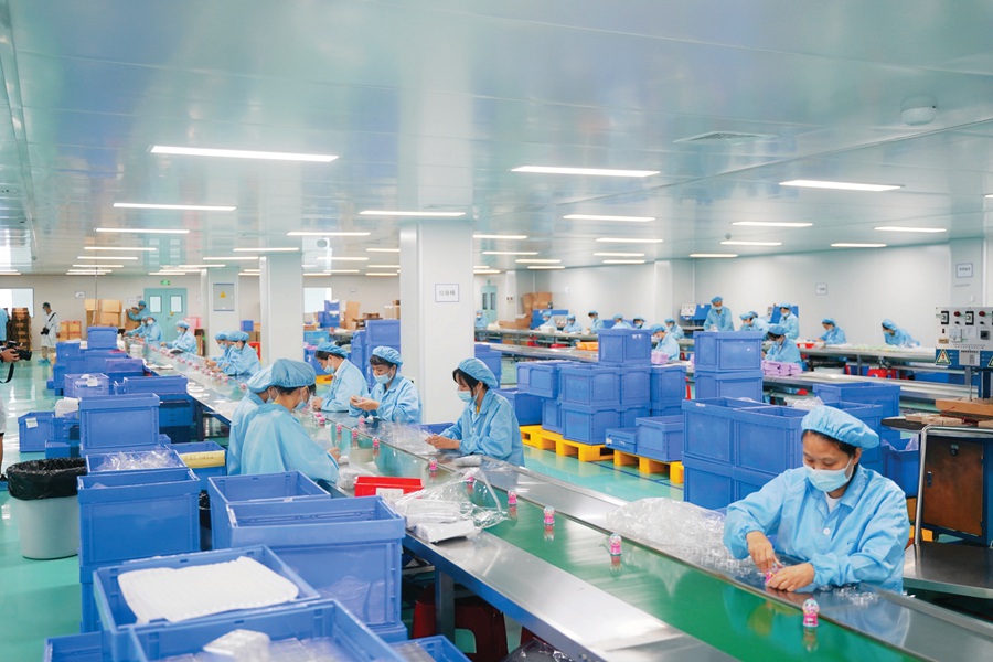 位于龍門工業(yè)園的惠州市深同躍實(shí)業(yè)有限公司生產(chǎn)線上,工人們加緊生產(chǎn)。 惠州日報(bào)記者湯渝杭 攝