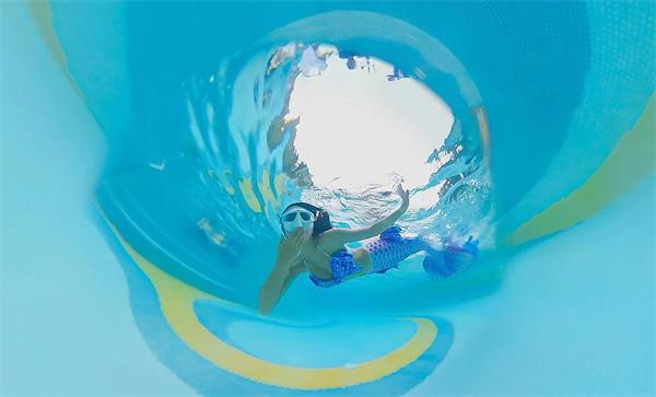 游客穿著美人魚尾巴,在水中翩翩起舞,做出平行側(cè)游、平行仰游等技術(shù)動作,如同精靈般在海水中起舞!懊廊唆~潛水現(xiàn)在越來越流行,受到很多女性的青睞,舉辦美人魚表演賽是想和休閑運動接軌,希望能吸引更多的女士來體驗世界最大的心型泳池,展現(xiàn)形態(tài)美和健康美!本皡^(qū)負責人說。