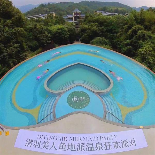在無邊森海的襯托以及夏日的天光云影的映照之下,美人兒拖著五顏六色的尾巴,在心型水中快樂、優(yōu)雅地暢游。這充滿神話的景象,讓人不禁有種“仙女下凡”的錯覺。據(jù)悉,該活動將計劃挑戰(zhàn)申報世界最大規(guī)模美人魚泳池表演秀吉尼斯紀錄。