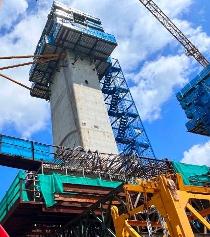 連日來,龍門大橋項目施工現(xiàn)場機器轟鳴,各種大型施工設(shè)備高速運轉(zhuǎn),施工人員有序作業(yè)……作為連接龍門東西片區(qū)的重要交通項目,龍門大橋建設(shè)進展一直備受關(guān)注。近日,記者從龍門縣交通部門獲悉,目前龍門大橋已基本完成橋梁下部結(jié)構(gòu),開始上部結(jié)構(gòu)橋面系掛梁施工,累計完成工程總量的79%。其中,柱基累計完成133根、圓柱墩62根、蓋梁23道、箱梁預(yù)制75片、箱梁架設(shè)54片、塔柱36米。