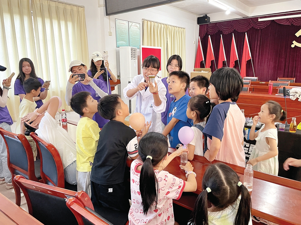 今年,在當(dāng)?shù)攸h委、政府的大力支持下,駐龍?zhí)镦?zhèn)幫鎮(zhèn)扶村工作隊結(jié)合實際,持續(xù)開展幫扶,將大學(xué)生力量進(jìn)一步深入到田尾、舊梁、賴屋、西埔等10余個村委。他們走進(jìn)村頭廣場、田間地頭及文明實踐站,為學(xué)齡前兒童、留守兒童及農(nóng)村小學(xué)生等500余名青少年送上趣味科普實驗課,實現(xiàn)了特色科學(xué)試驗項目在龍?zhí)镦?zhèn)幼兒園、小學(xué)及村級組織陣地全覆蓋。據(jù)悉,自2021年以來,項目團(tuán)隊已累計走進(jìn)龍門縣20余所學(xué)校、10余個村委,面向3000多名鄉(xiāng)村青少年開展線下授課,并結(jié)合線上直播方式讓30萬人次青少年群體受益。