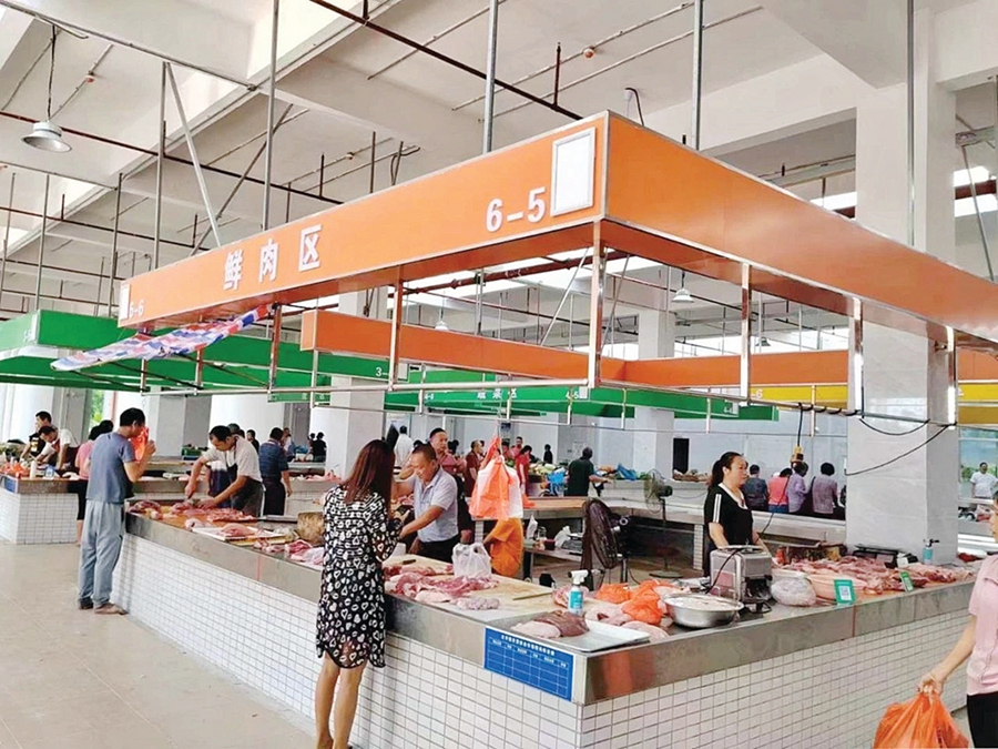龍華鎮(zhèn)農(nóng)貿(mào)綜合市場位于龍華圩鎮(zhèn)教師村居民小區(qū)旁,總投資996萬元,占地面積7866.21平方米,建筑面積3139平方米,配套建設有電氣照明、消防、給排水、通風系統(tǒng)等基礎設施,設置有個體商戶(肉、菜、果蔬)店鋪共88個,其中內部檔位56個、外鋪32個。