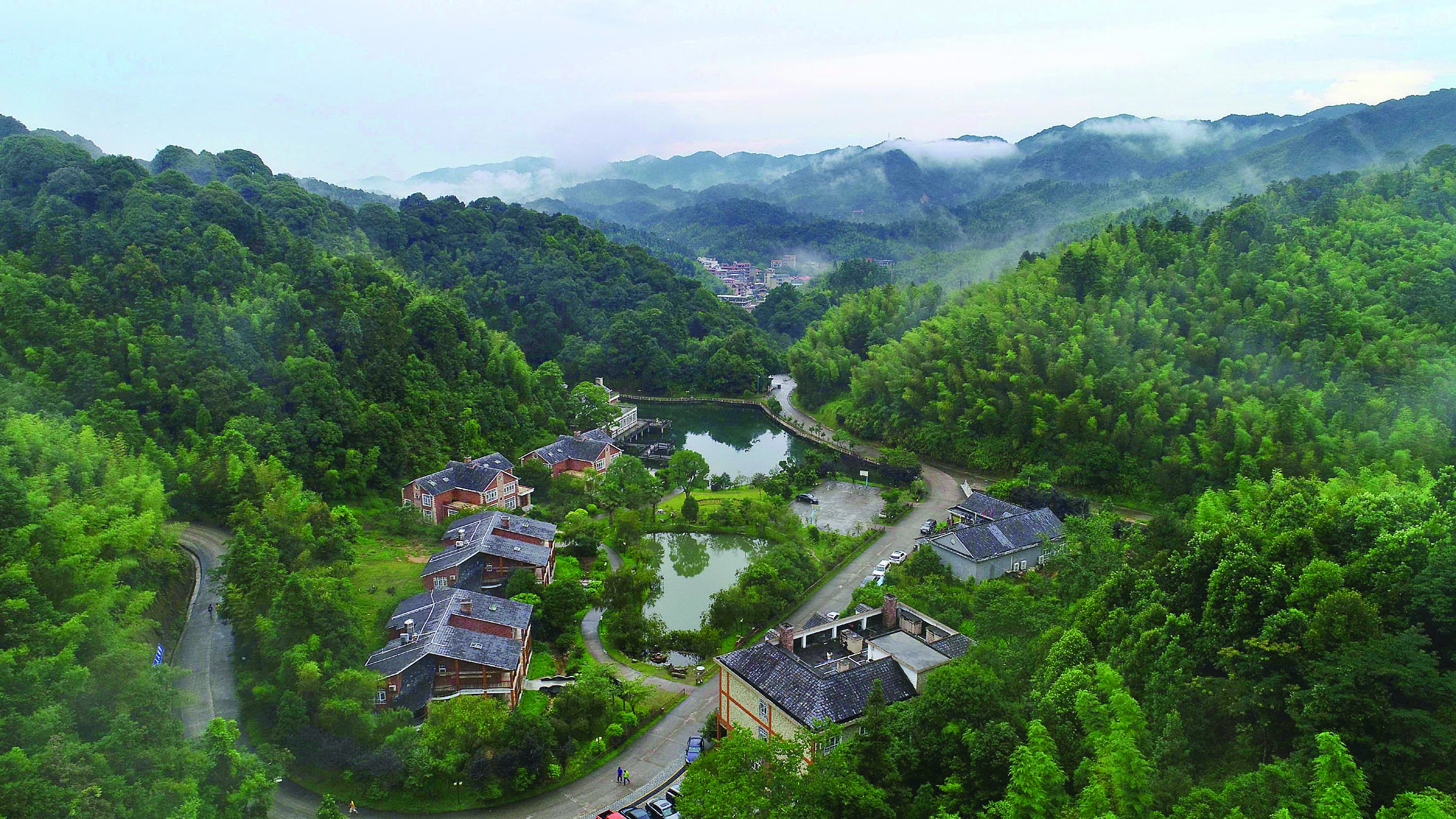游客在高山別墅休閑度假。