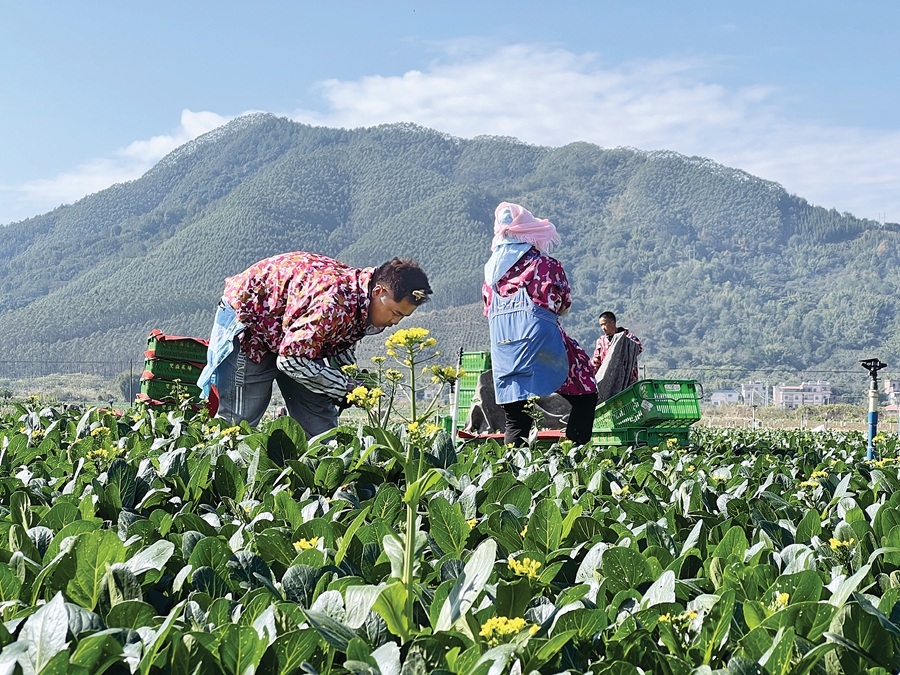 菜農(nóng)忙著采摘新鮮菜心。惠州日?qǐng)?bào)記者黃宇翔 攝