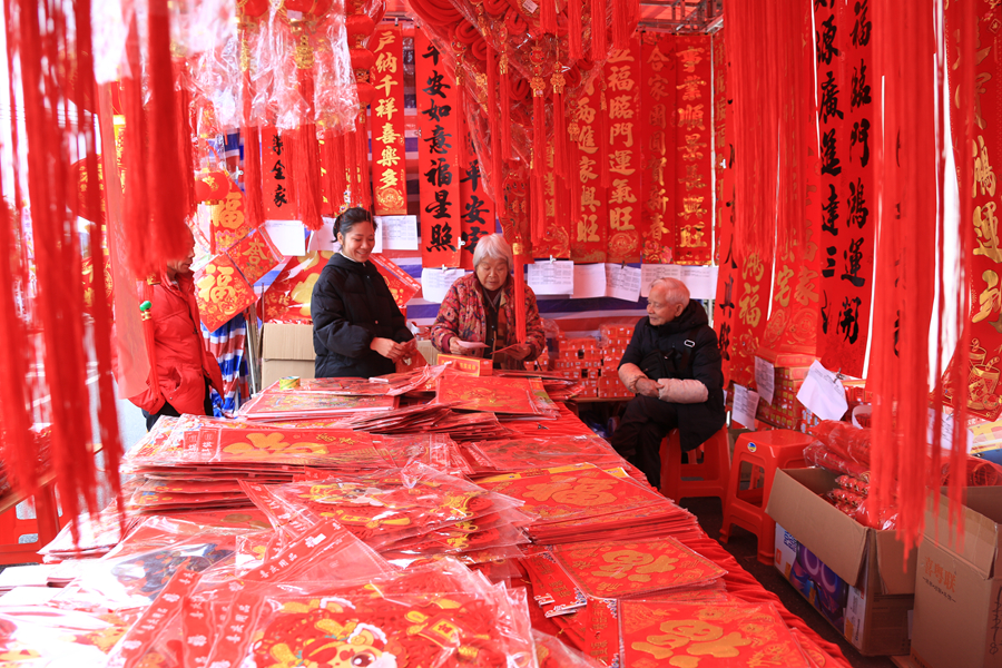 記者日前在龍門縣城谷行街、中心市場(chǎng)等地看到,瓜子、糖果、海味、對(duì)聯(lián)……商鋪都把節(jié)慶商品擺上貨架,不少顧客正在選購(gòu)。縣城年味最濃的地方,莫過于谷行街。谷行街自古以來都是龍門縣城最繁榮的商貿(mào)交易街道,走進(jìn)谷行街,濃濃年味撲面而來:對(duì)聯(lián)、年畫、中國(guó)結(jié)、紅燈籠、糖果、餅干、瓜子、花生……各種年貨商品琳瑯滿目、應(yīng)有盡有。來來往往的人們手上拎著大包小包,臉上洋溢著過年的喜悅。