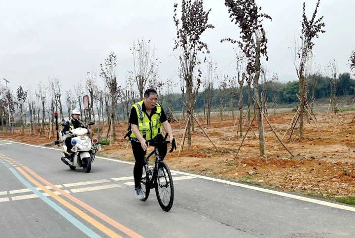 測量中,丈量員王一路騎行穿越城區(qū)、馳騁于彩虹跑,從龍門縣體育館(起點(diǎn))開始測量,沿賽道全線,每騎行1公里就停下來確認(rèn)點(diǎn)位。測量組對每公里的點(diǎn)位進(jìn)行定點(diǎn)標(biāo)記、位置描述以及詳細(xì)的數(shù)據(jù)描述,記錄存檔,以便于后續(xù)科學(xué)合理地進(jìn)行公里牌、補(bǔ)給站和醫(yī)療點(diǎn)位置的設(shè)置。