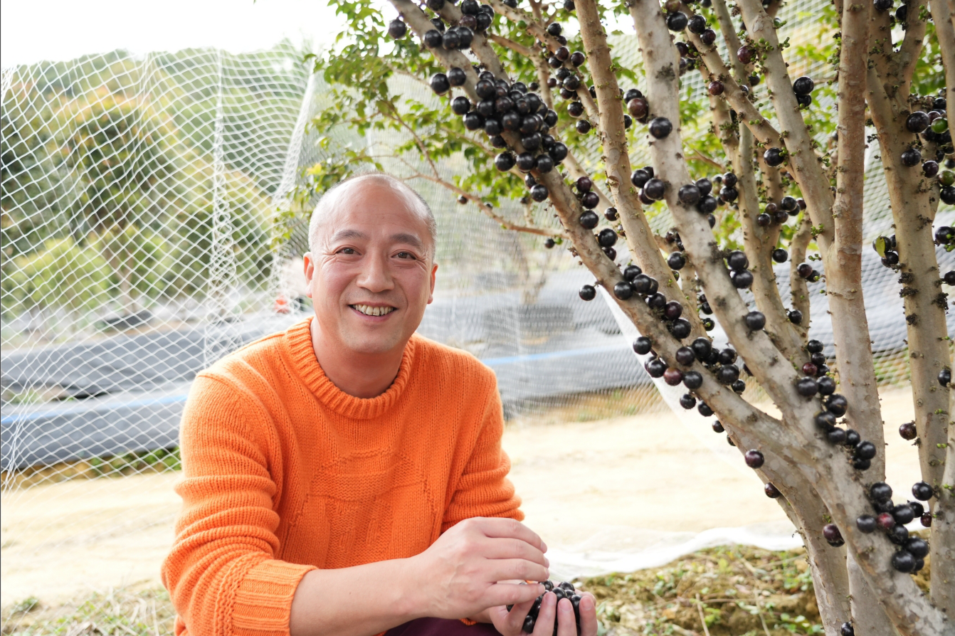 今年是虞文樹與嘉寶果結(jié)緣的第5個(gè)年頭。此前,他從浙江老家到龍門永漢開辟農(nóng)業(yè)種植基地,種植有機(jī)蔬菜。后來,經(jīng)過多次考察調(diào)研,他敏銳地嗅到嘉寶果的市場(chǎng)商機(jī),且發(fā)現(xiàn)龍門溫和濕潤(rùn)的氣候條件非常適合種植這種水果,于是調(diào)整方向,發(fā)力嘉寶果產(chǎn)業(yè)。