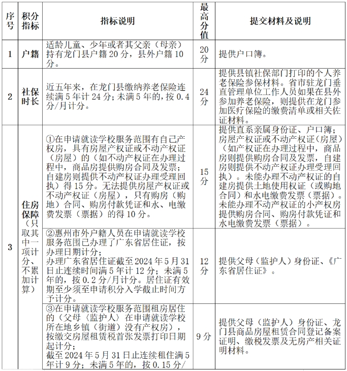 適齡兒童少年屬于非學區(qū)所在鎮(zhèn)(街)戶籍的,其監(jiān)護人需持有龍門縣“居住證”(有效期須包含2024年5月)且購買了龍門縣2024年5月“ 基本養(yǎng)老保險”的異地務工人員隨遷子女。監(jiān)護人戶籍是惠州市的,無需提供居住證;適齡兒童少年戶籍是龍門縣的,無需提供監(jiān)護人購買基本養(yǎng)老保險憑證。