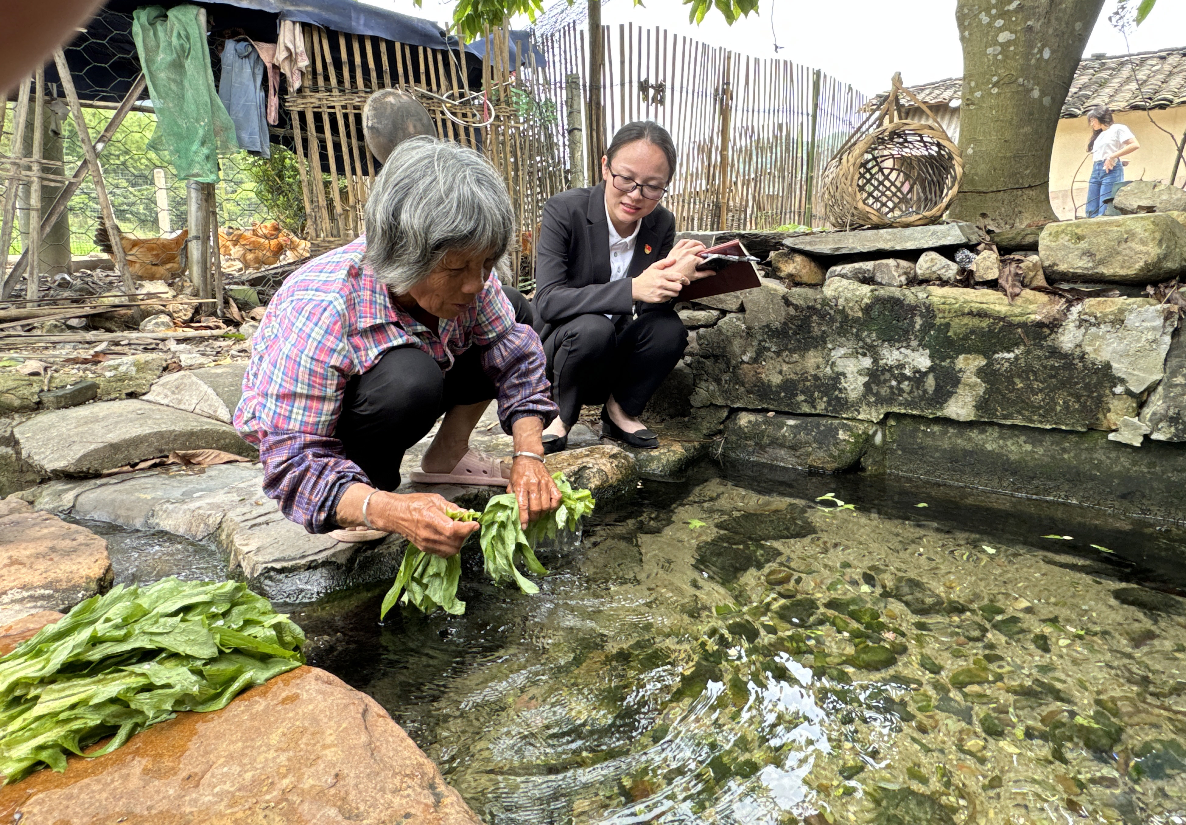 吳鎮(zhèn)珊(右)走訪村民。惠州日報(bào)記者張藝明 攝