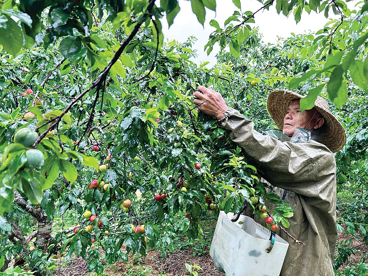 農(nóng)戶采摘三月李;葜萑請笥浾唿S宇翔 通訊員龍融心 攝